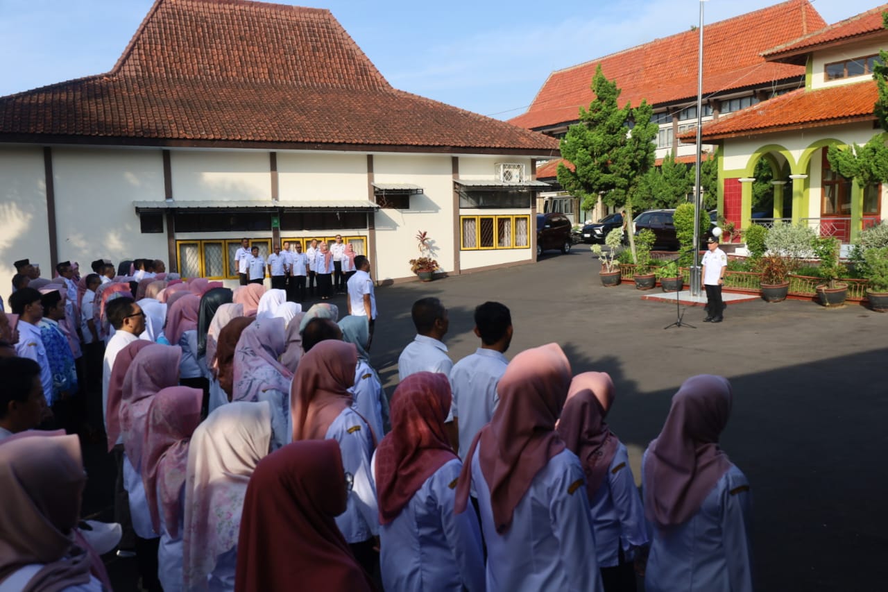 Apel pagi yang dirangkaikan dengan halal bihalal ini menjadi bagian dari program 100 Hari Kerja. Di hadapan para pendidik dan tenaga kependidikan, Bupati menekankan pentingnya peran guru sebagai figur yang menginspirasi.