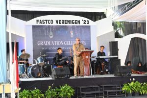 Pelepasan Siswa Kelas XII SMA Negeri 1 Kuningan dengan tema “Fastco Verenigen ‘23” tersebut dilanjutkan dengan pemberian piagam kepada siswa-siswi berprestasi, dimana secara simbolis, Bupati Acep memberikan piagam kepada salah satu siswa. (BagProkompim/SetdaKuningan)