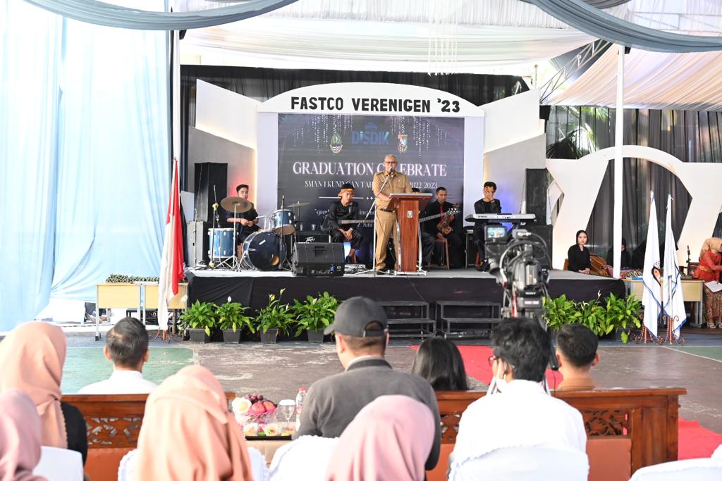 Pada kesempatan tersebut, Bupati Acep menyampaikan selamat kepada siswa kelas XII yang telah menyelesaikan masa pendidikan selama 3 tahun di SMA Negeri 1 Kuningan.