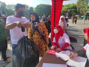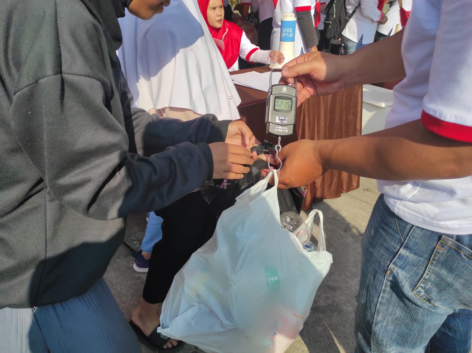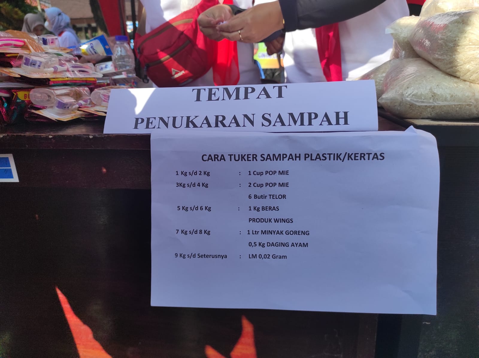 Kepala Dinas Lingkungan Hidup, Wawan Setiawan, menjelaskan bahwa program tukar sampah plastik di booth tersebut memiliki langkah-langkah tertentu. Jika seseorang membawa sampah plastik/kertas dengan berat antara 1kg hingga 2kg, mereka akan mendapatkan 1 cup mie instan. Untuk sampah dengan berat antara 3kg hingga 4kg, mereka akan mendapatkan 2 cup mie instan atau 6 butir telur ayam. Kemudian, jika sampah plastik/kertas mencapai berat antara 5kg hingga 6kg, mereka akan mendapatkan 1kg beras atau produk cuci piring. Untuk sampah dengan berat antara 7kg hingga 8kg, mereka akan mendapatkan 1 liter minyak goreng atau 0,5 kg daging ayam. Dan yang terakhir, jika sampah plastik/kertas mencapai berat 9kg atau lebih, mereka dapat menukarkannya dengan Logam Mulia seberat 0,02 gram.