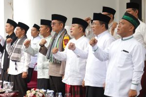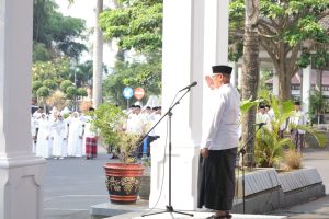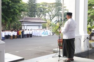 KUNINGAN – Mengusung tema Jihad Santri Jayakan Negeri, Peringatan Hari Santri tahun 2023 tingkat Kabupaten Kuningan di gelar. Ratusan santri bersama dengan segenap unsur ASN memadati lapangan Sekretariat Daerah Kabupaten Kuningan. Bertindak sebagai Pembina Upacara, Bupati Kuningan, H. Acep Purnama SH MH, pada Minggu (22/10/2023)