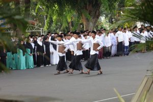 Pelaksanaan upacara Hari Santri Nasional berlangsung dengan khidmat,  Dr. KH. Ayub Ahmad menyebutkan acara dimulai  pembacaan ayat suci Al-Quran, pengibaran bendera Merah Putih diiringi Lagu Kebangsaan Indonesia Raya, mengheningkan cipta, pembacaan Teks Pancasila, Pembukaan UUD Negara RI Tahun 1945, Ikrar Santri, pembacaan Resolusi Jihad, amanat Pembina Upacara, serta menyanyikan Lagu Syubbanul Wathon dan Lagu Santri. Peringatan ini diakhiri dengan pembacaan doa. (IKP/DISKOMINFO/PROKOMPIM)