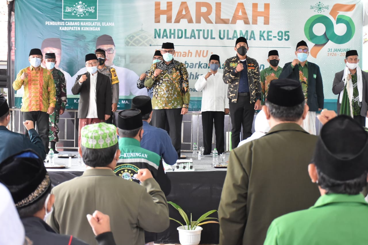 Dalam kesempatan ini Bupati Kuningan H. Acep Purnama SH., MH mengucapkan selamat memperingati Harlah Nahdatul Ulama ke-95 semoga semakin taat kepada guru serta taat kepada nasehat para alim ulama.