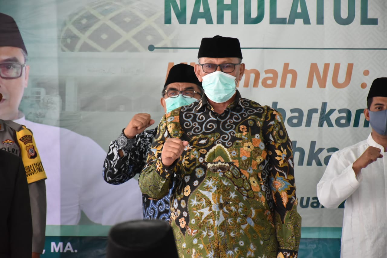 “Pada momentum ini, saya mengajak pada seluruh Nahdiyin yuk kita sama-sama maksimalkan hidmah kita, pada negara ini. Mengajak seluruh banom, MWC, Ranting selalu berkhidmah walaupun belum sempurna. Untuk mengawal NKRI, untuk menyebarkan Ahli Sunnah Wal Jamaah,” ajaknya.