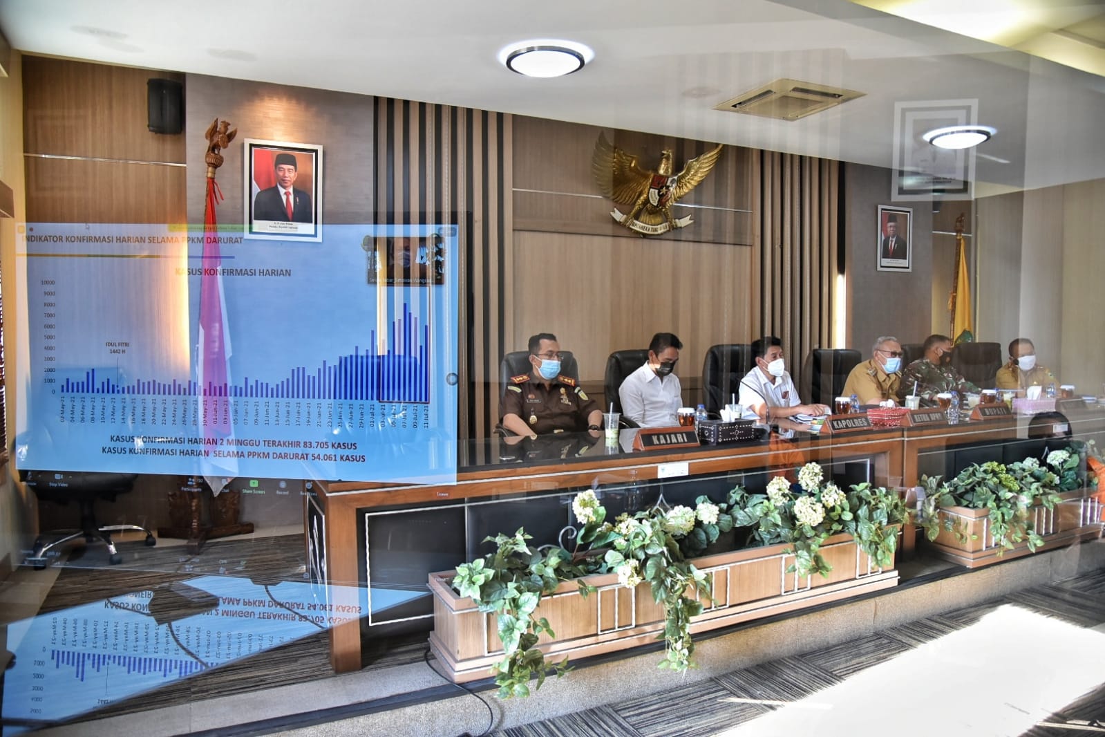Kuningan ,- Bupati Kuningan, H. Acep Purnama, SH., MH. melaksanakan Rapat Koordinasi bersama Forkopimda Kabupaten Kuningan terkait tindak lanjut PPKM Darurat di Kabupaten Kuningan, Senin (12/7/2021) Sore, di Ruang Rapat Linggarjati.