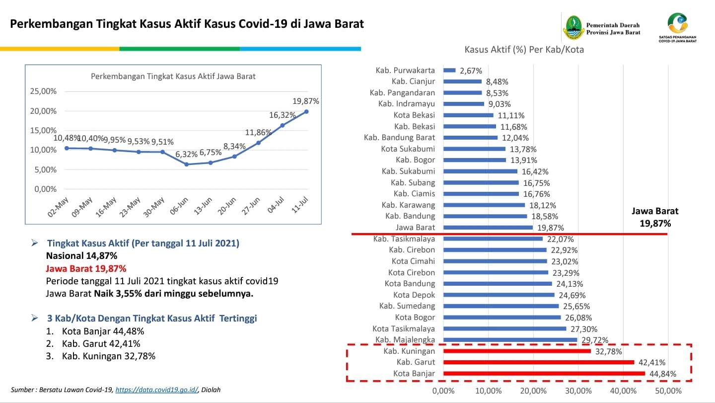 “Sehubungan dengan meningkatnya kasus covid-19 di Kabupaten Kuningan dari waktu ke waktu, mulai dari angka kematian yang meningkat secara signifikan dibading waktu terdahulu dan angka kesembuhan yang masih rendah, sehingga saya bersama Forkopimda memutuskan untuk dilakukan penyekatan yang akan dimajukan dari mulai pukul 14.00 siang sampai pukul 05.00 pagi terhitung mulai tanggal 13 juli 2021 sampai dengan tanggal 20 juli 2021,” jelasnya.