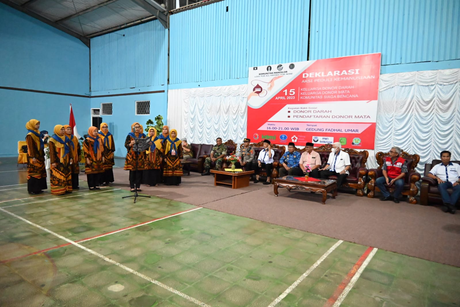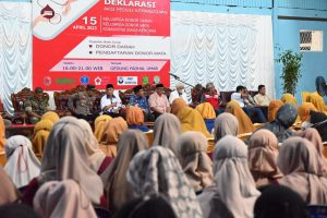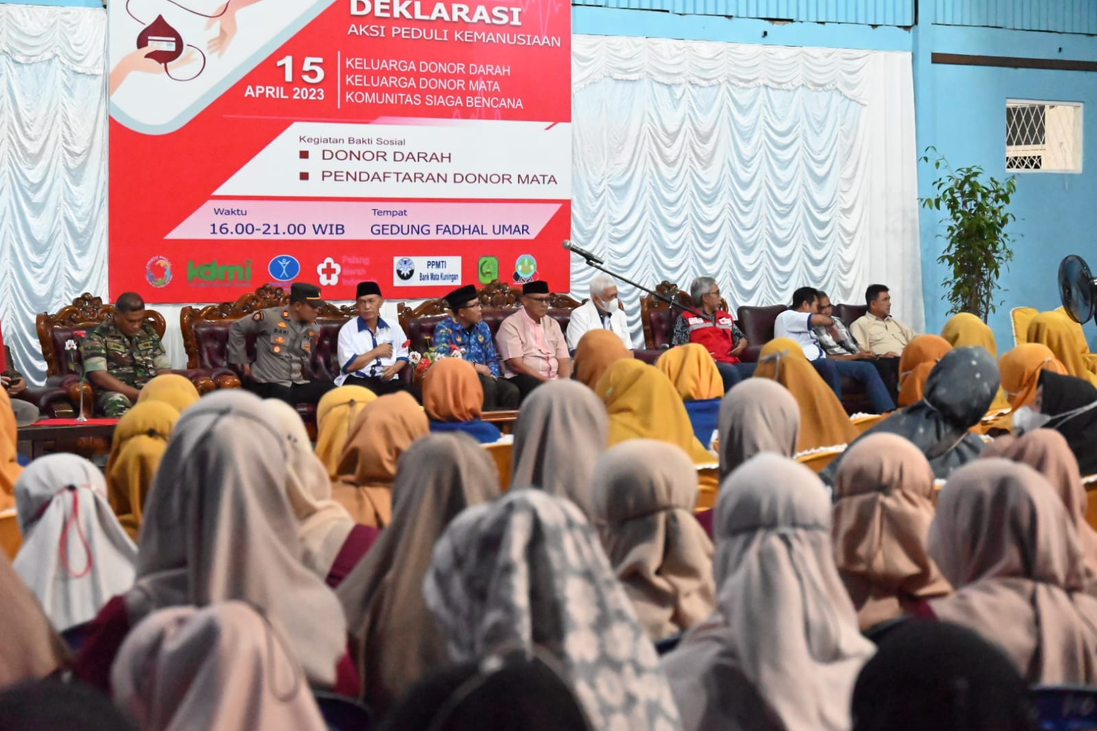 KUNINGAN- Bupati Kuningan H. Acep Purnama, SH., MH memberikan arahan pada saat menghadiri kegiatan Deklarasi Peduli Kemanusiaan, diantaranya Kampung Siaga Donor Darah, Kampung Siaga Donor Kornea Mata dan, Kampung Siaga Bencana bersama masyarakat Desa Manislor Kecamatan Jalaksana. Sabtu (15/4/2023).