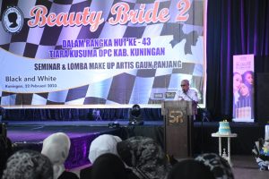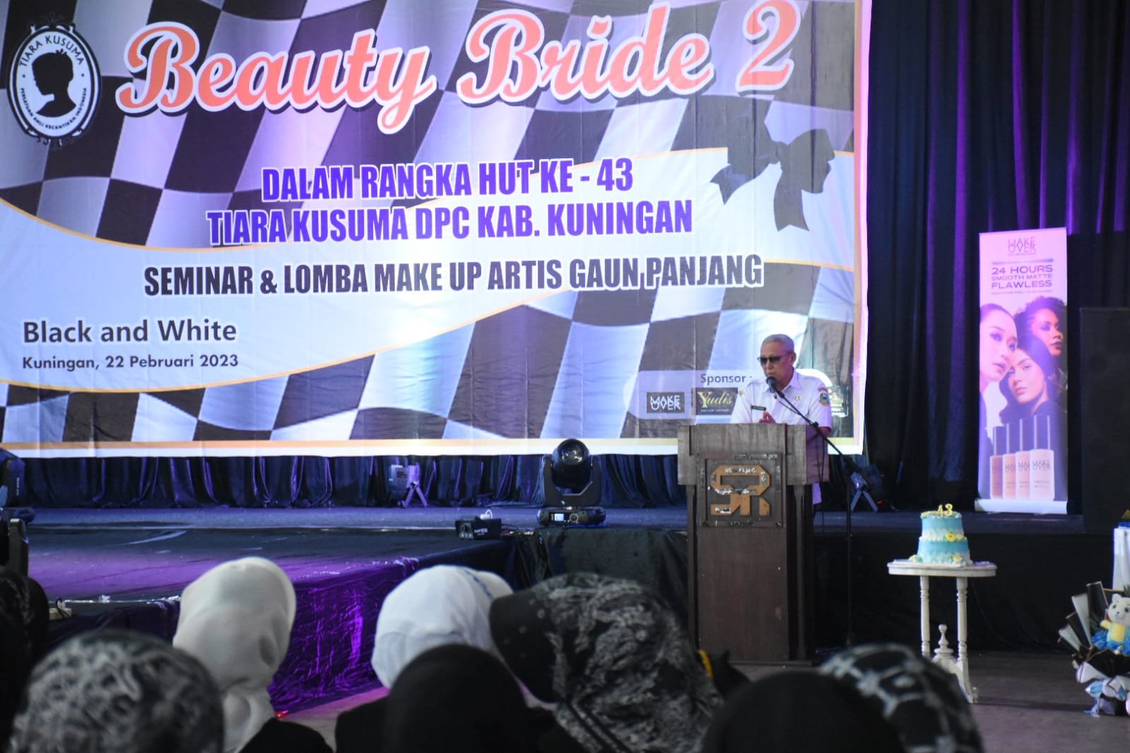 UNINGAN-HUT Ke-43 Tiara Kusuma DPC Kabupaten Kuningan, di buka langsung oleh Bupati Kuningan H. Acep Purnama, SH., MH dengan agenda di dalamnya ialah Seminar dan Lomba Make Up Artis Gaun Panjang “Beauty Bride 2” yang bertempat di Gedung Serbaguna Sanggariang, Rabu (22/02/2023).