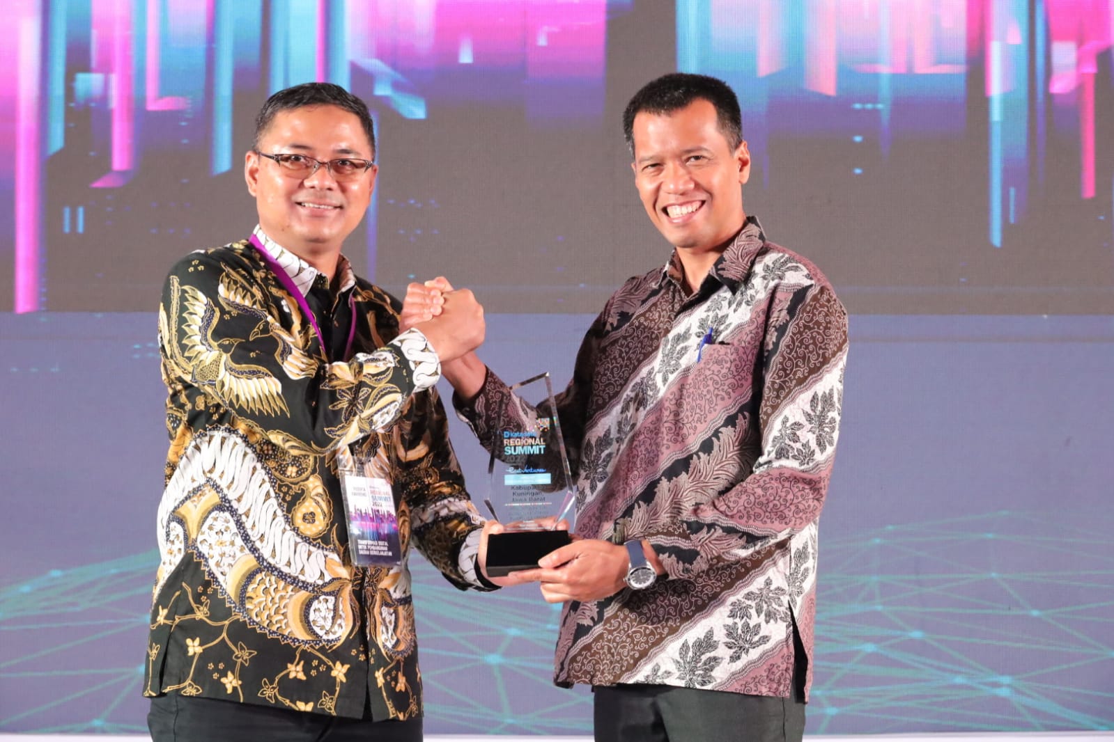 Untuk Kabupaten Kuningan diterima Bupati Kuningan H. Acep Purnama, MH diwakili Kepala Dinas Komunikasi dan Informatika Kabupaten Kuningan, pada acara Regional Summit di Jakarta. Kamis, (1/12/22).