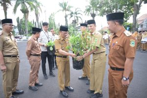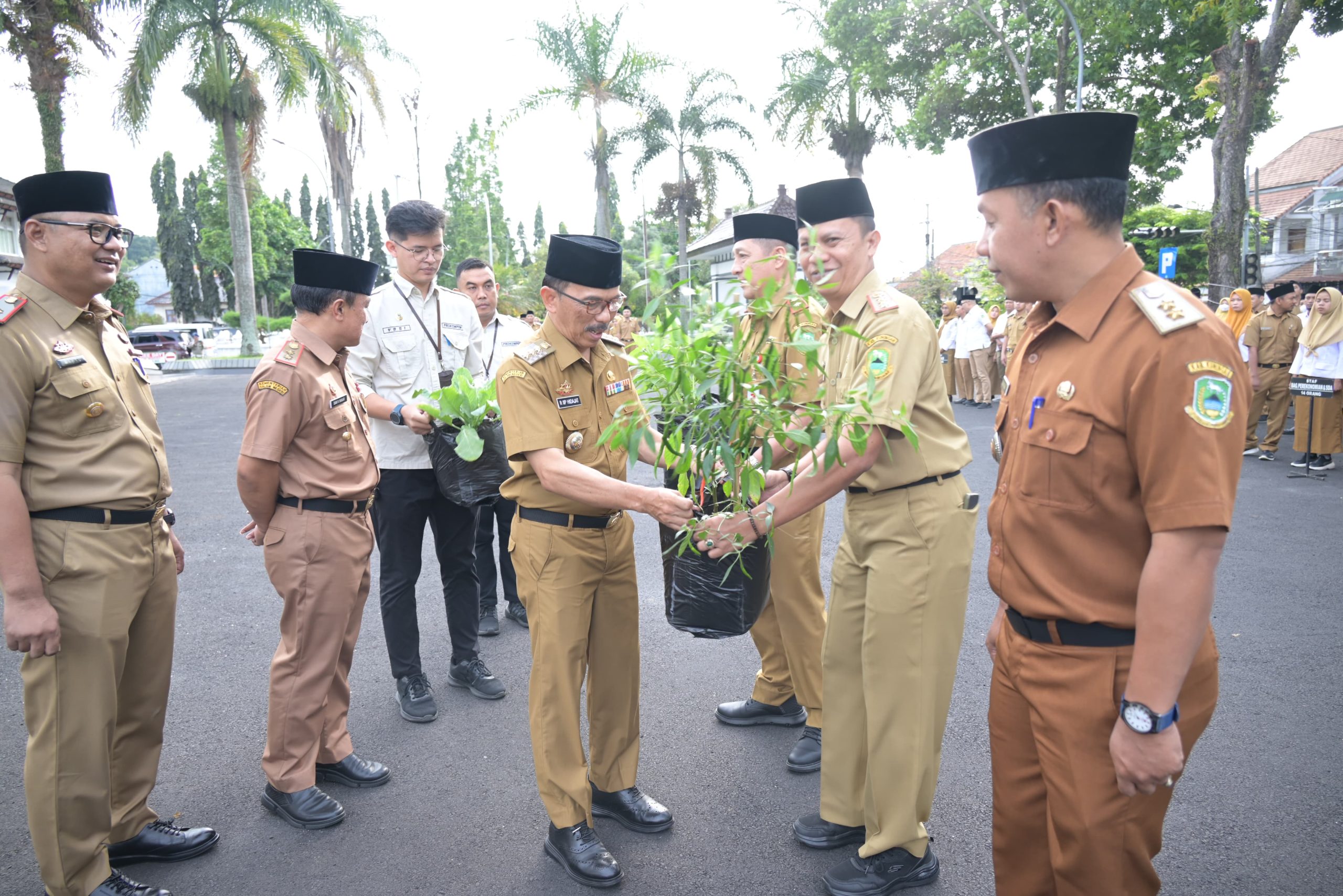KUNINGAN – Dalam rangka memaksimalkan lahan pekarangan seluruh Perangkat Daerah (Instansi) di Pemerintah kabupaten Kuningan, Penjabat Bupati, Raden Iip Hidajat memulai program Gerakan Kuningan Menanam (Melak Beu). Dilaunching pada pelaksanaan apel pagi rutin lingkup Sekretariat Daerah, Senin pagi (03/06/2024).