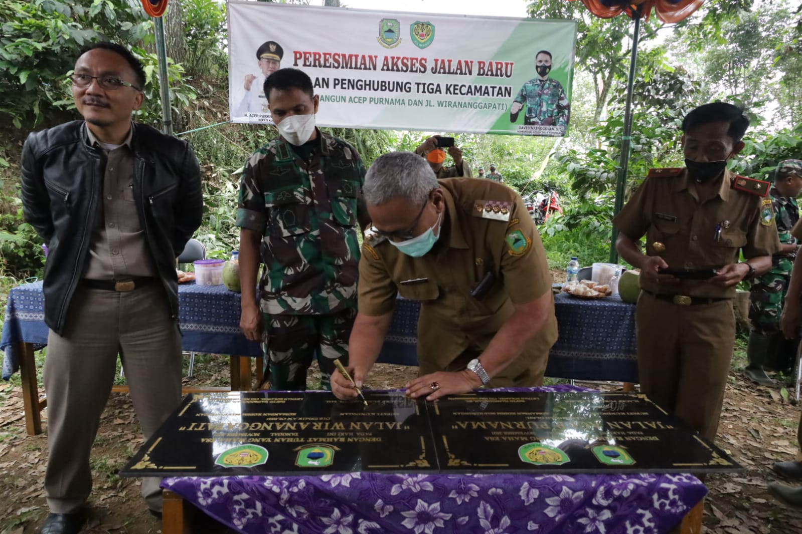 Bupati Kuningan mengatakan, Pemerintah Kabupaten Kuningan atas dukungan Dandim 0615 Kuningan berkomitmen akan menyelesaikan pembuatan ketiga akses jalan tersebut sampai dengan proses penetrasi, rambat beton dan pengaspalan. Hal ini berdampak positif juga pada Jalur Blok Pugag –Kujangsari akan diperbaiki. (IKP/DISKOMINFO).