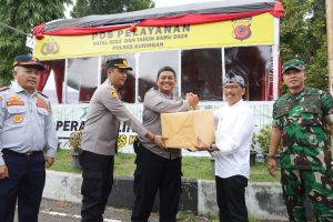 Tidak hanya sebagai bentuk dukungan moril, Pj Bupati Iip Hidajat juga membagikan bingkisan kepada petugas pengamanan Natal dan Tahun Baru sebagai wujud apresiasi atas dedikasi dan pengorbanan mereka. “Kami mengapresiasi dedikasi dan pengorbanan para petugas yang bekerja keras menjaga keamanan selama libur akhir tahun,” tambahnya.