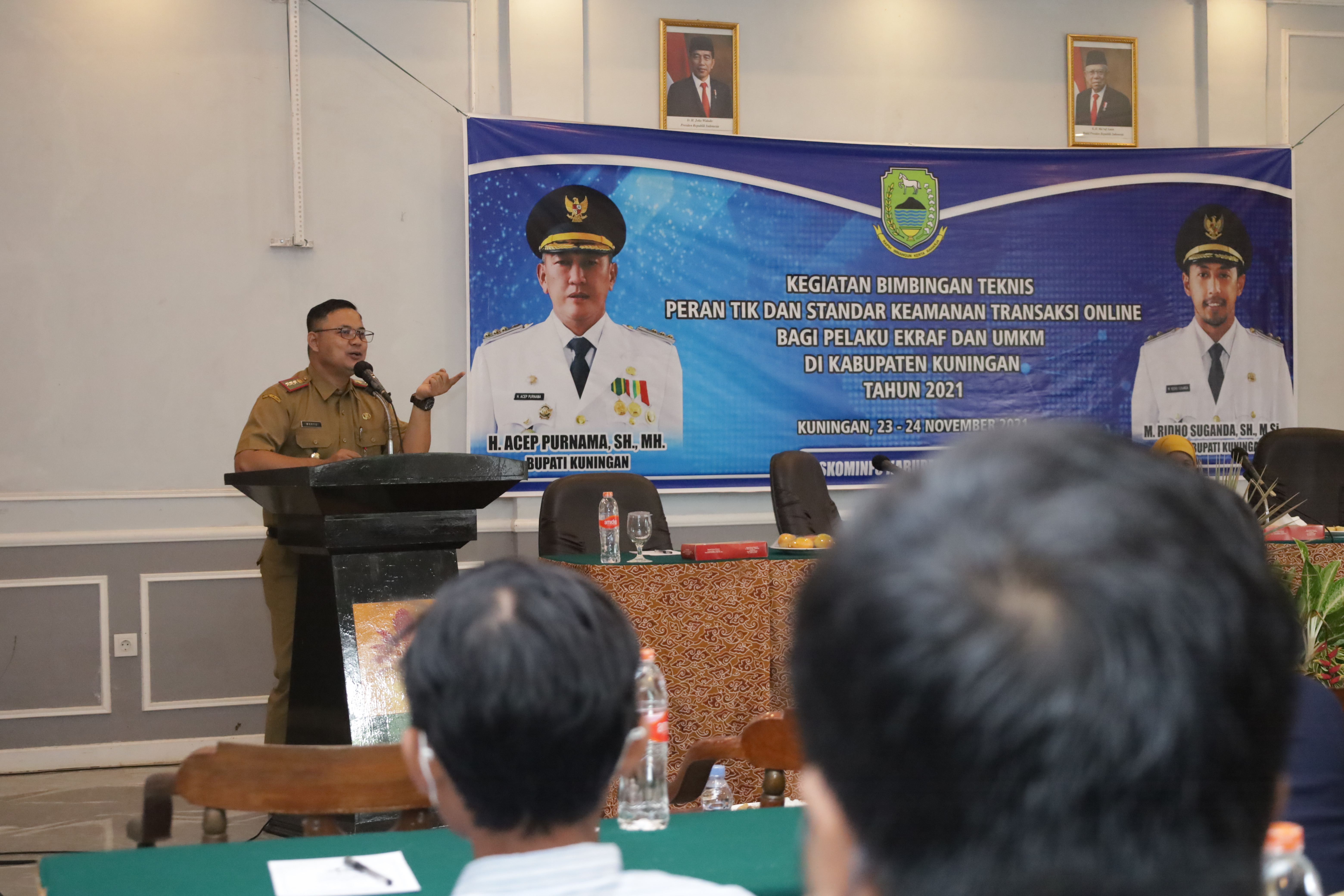 Hal itu, disampaikan Kepala Dinas Komunikasi dan Informatika (Diskominfo) Kabupaten Kuningan Dr. Wahyu Hidayah, M.Si, saat membuka kegiatan Bimbingan Teknis Peran TIK dan Standar Keamanan Transaksi Online Bagi Pelaku Ekraf dan UMKM di Kabupaten Kuningan Tahun 2021, di Aula Prima Resort, Sangkanhurip, Selasa (23/11/2021).
