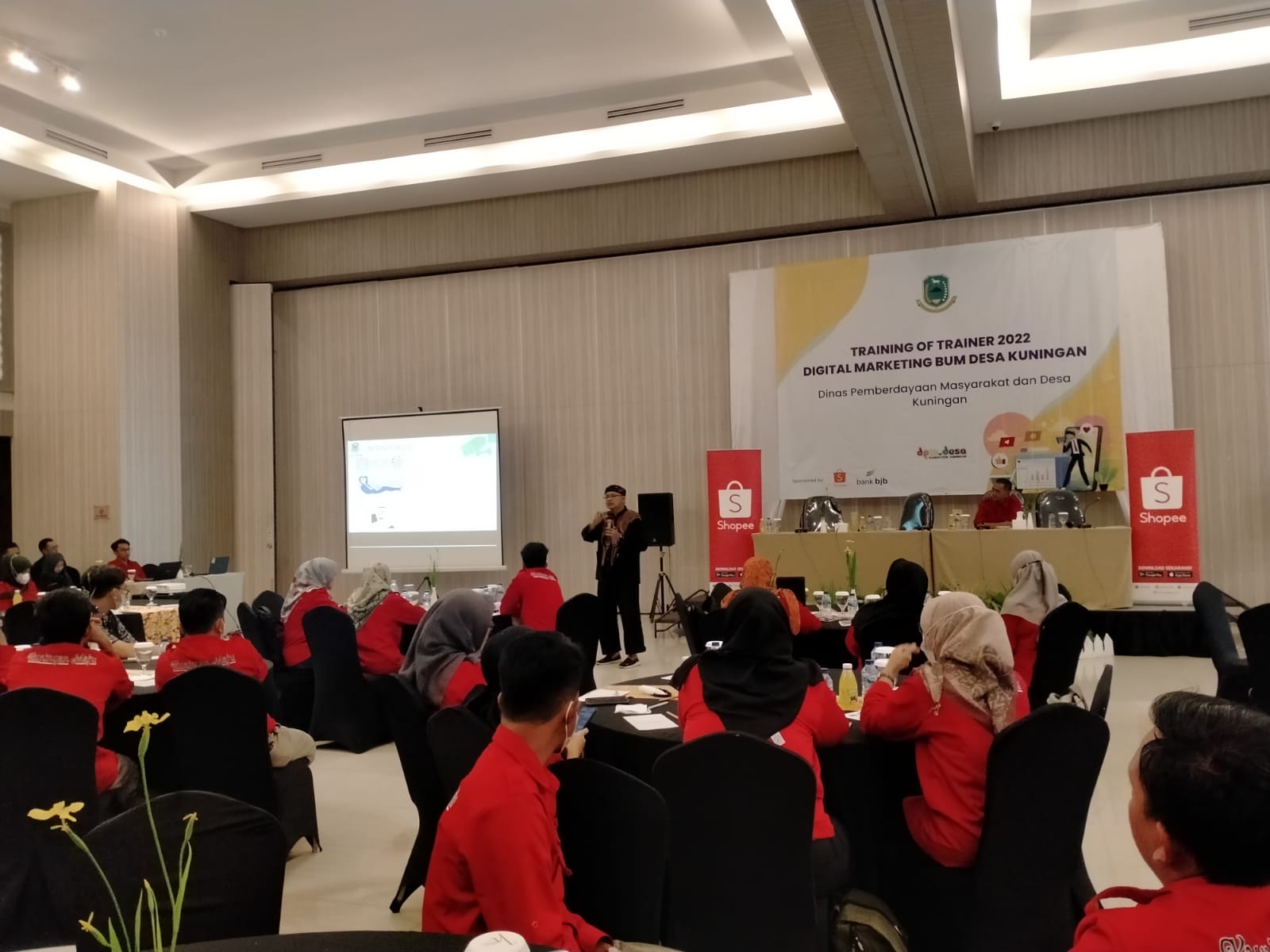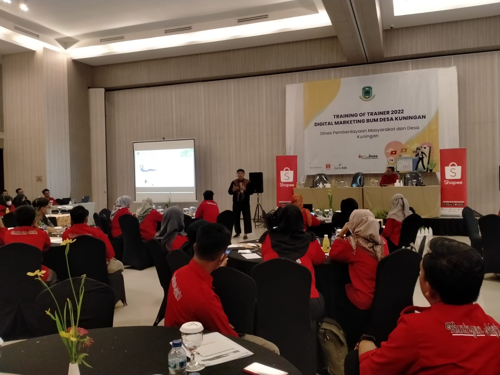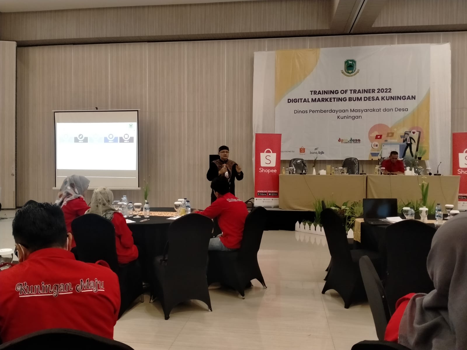 Cigandamekar, Kamis, (24/03/2022). Kepala Dinas Komunikasi dan Informatika Kabupaten Kuningan Dr. Wahyu Hidayah, M.Si memberikan paparan sebagai Narasumber dalam kegiatan Training Of Trainer (TOT) 2022 Digital Marketing BUMDesa Kuningan yang digelar oleh Dinas Pemberdayaan Masyarakat Desa (DPMD) Kabupaten Kuningan di Hotel Horison Kuningan.