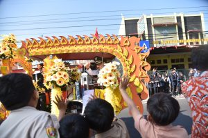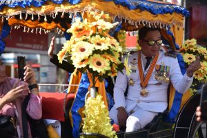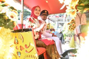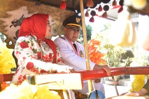 Masyarakat juga antusias, melambaikan tangan dan menyapa Bupati, Wakil Bupati, Forkopimda, Para Staff ahli, Assisten Daerah dan Para Kepala SKPD dalam puncak Hari Jadi Kuningan, “Mungkas Udagan nu Sajati”