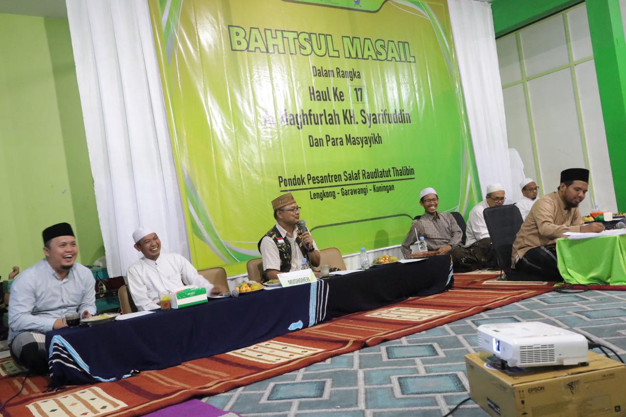 KUNINGAN- Pondok Pesantren Raudlatut Thalibin Desa Lengkong, Kecamatan Garawangi menggelar Forum Bahtsul Masail dalam rangka Haul ke-17 Al-Magfurlah KH. Syarifudin, dengan merumuskan beberapa hal terkait, apakah pencurian data oleh hacker disebut sariqah dalam fiqih, dan Bagaimana pandangan fiqih terkait membongkar data-data privasi, Minggu Malam (4/12/2022). Hadir para Mushoheh, Muharrir, Delegasi dan Moderator.