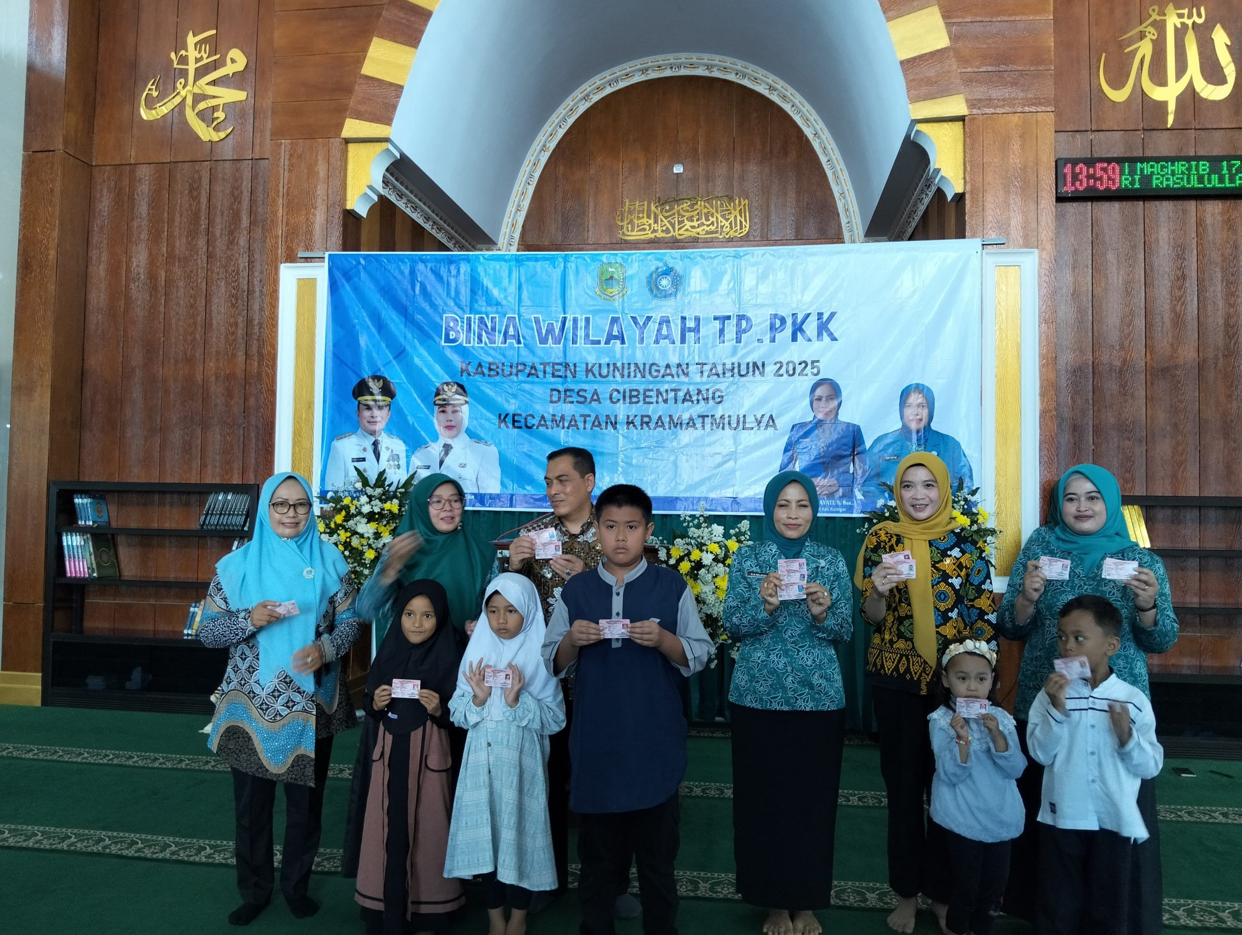 KUNINGAN – Ada yang berbeda dari kunjungan kerja Ketua Tim Penggerak PKK Kabupaten Kuningan, Ny. Hj. Elah Dian, ke Desa Cibentang, Kecamatan Kramatmulya, Jumat (25/7/2025). Tak hanya memberi pembinaan rutin, namun  membawa “hadiah istimewa” juga  bagi  anak-anak, yakni Kartu Identitas Anak (KIA).