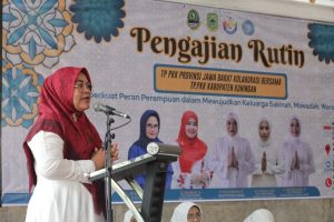 Ketua TP PKK Kabupaten Kuningan Hj. Ika Siti Rahmatika menyampaikan rasa terima kasihnya kepada TP PKK Jabar atas kepercayaannya menjadikan Kuningan sebagai tuan rumah dalam pelaksanaan pengajian rutin ini.