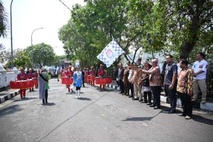 KUNINGAN – Komisi Pemilihan Umum (KPU) Kabupaten Kuningan melanjutkan Kirab Pemilu 2024 setelah serah terima dari KPU Kabupaten Pemalang Provinsi Jawa Tengah. Diterima secara langsung oleh Ketua dan Sekretaris KPU Kabupaten Kuningan, bertempat di Taman Pandapa Paramarta, Rabu (01/11/2023).