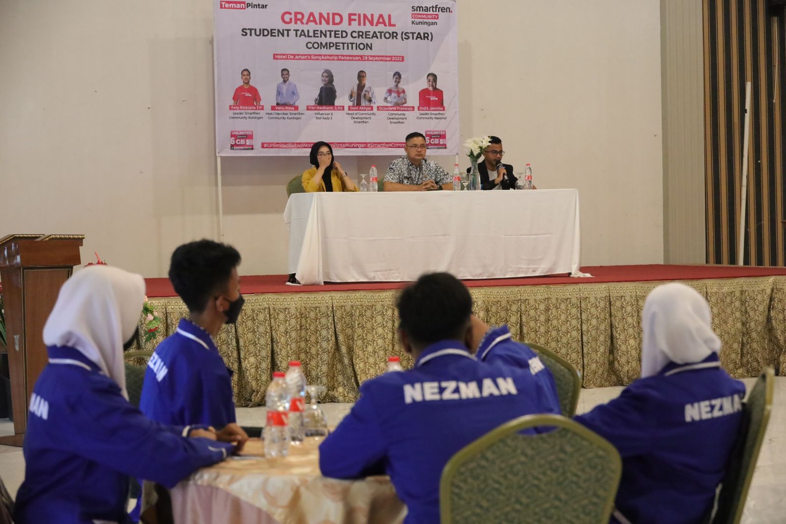 Hal tersebut disampaikan, Dr. Wahyu Hidayah, M.Si, Kadis Komunikasi dan Informatika Kabupaten Kuningan, pada acara Grand Final Student Talented Creator (STAR) Competition yang diselenggarakan Smartfren Community dengan tema To be the next Content Creator Kabupaten Kuningan. Bertempat De Jehan’s Hotel, Kamis, ( 29/09/2022) dengan peserta pelajar SMP.