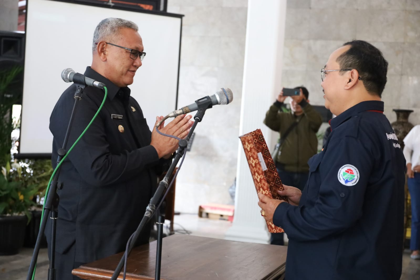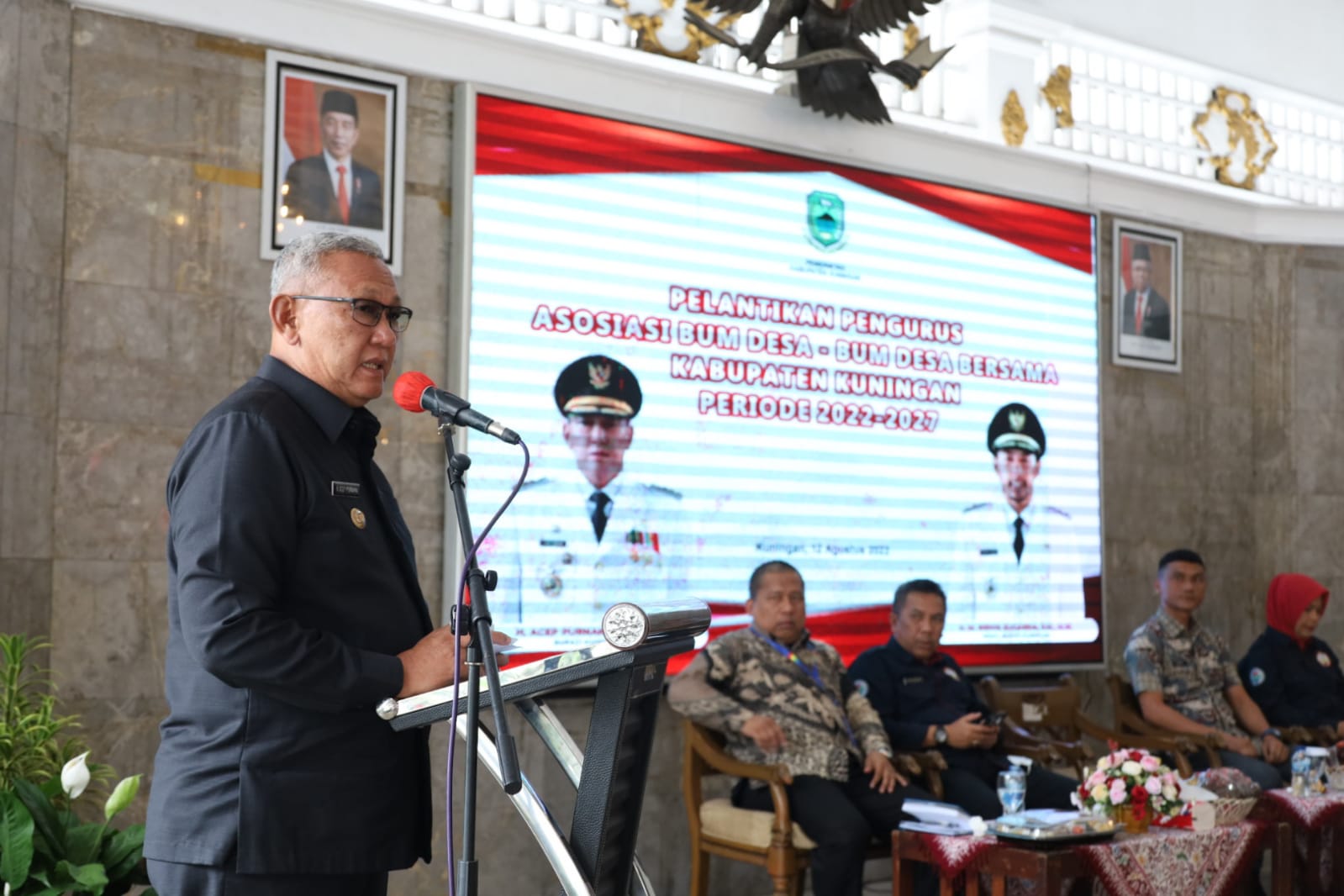 KUNINGAN,- Bupati Kuningan H. Acep Purnama SH.MH melantik Pengurus Asosiasi Badan Usaha Milik Desa (BUMDes) dan Badan Usaha Milik Desa Bersama (BUMDesMA) Kabupaten Kuningan Periode 2022-2027 bertempat di Aula Pendopo Setda Kabupaten Kuningan, Jumat (12/8/2022).