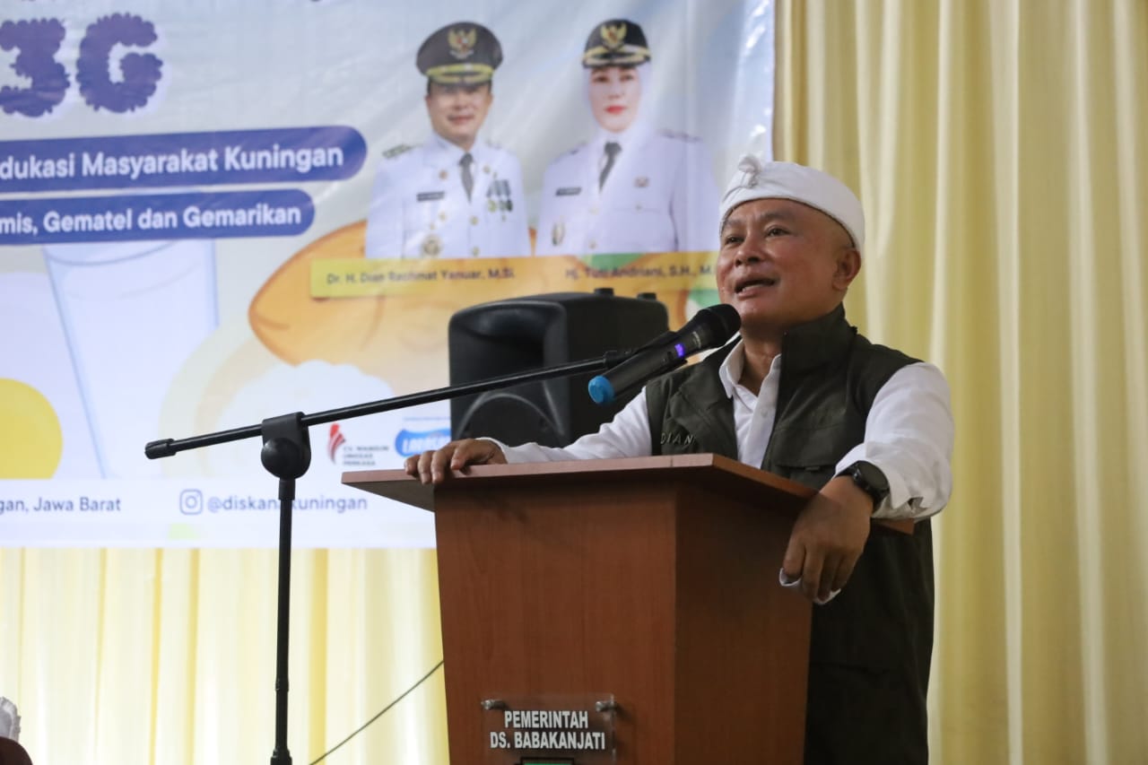 KUNINGAN — Upaya mempercepat penurunan angka stunting terus digencarkan Pemerintah Daerah Kabupaten Kuningan. Kali ini, komitmen itu diwujudkan melalui kegiatan Semarak 3G (Gerimis, Gematel, dan Gemarikan) yang berlangsung di Aula Desa Babakanjati, Kecamatan Cigandamekar, Kamis (6/11/2025).