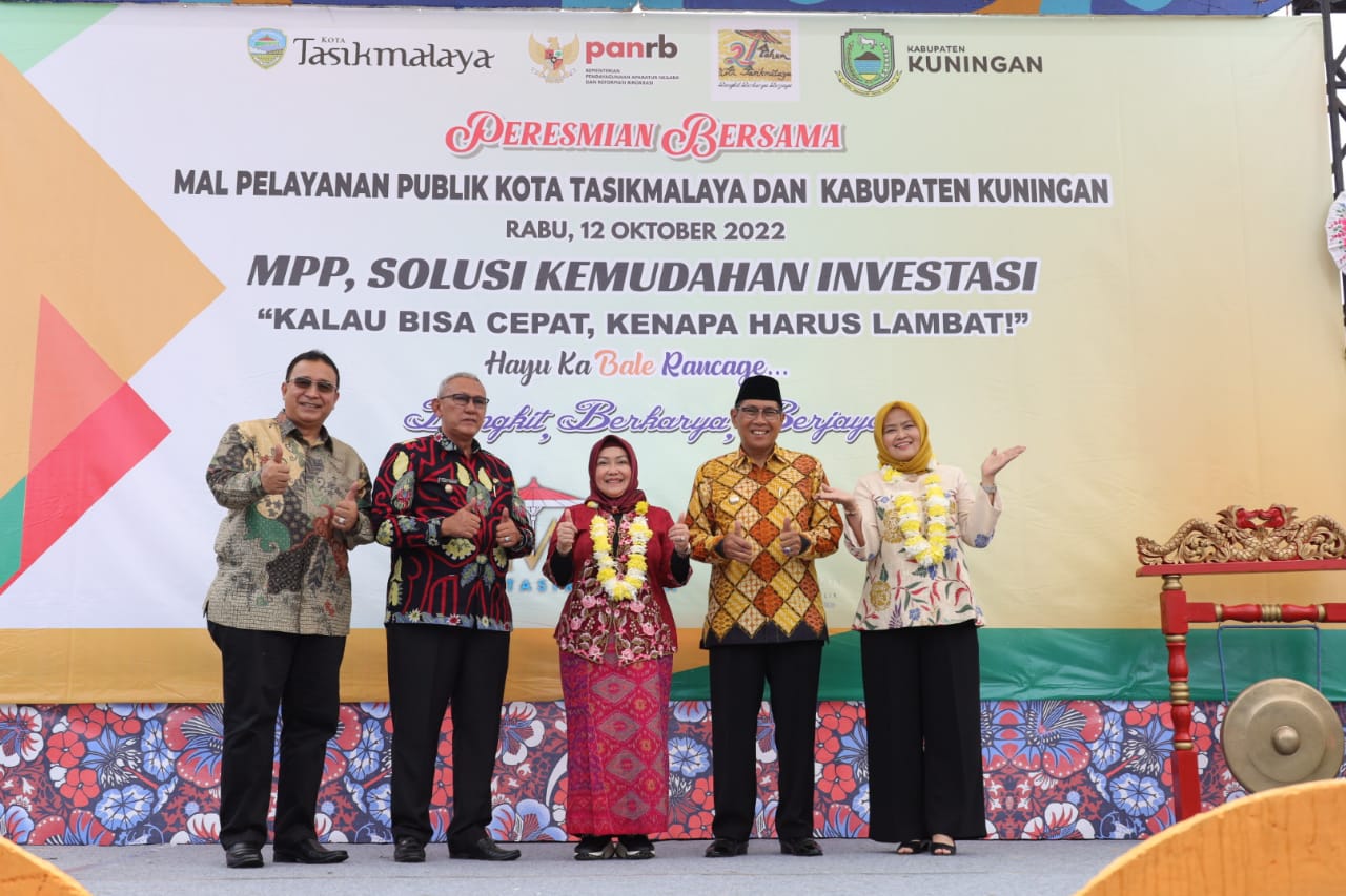 KOTA TASIKMALAYA,- Deputi Bidang Pelayanan Publik Kementerian Pendayagunaan Aparatur Negara dan Reformasi Birokrasi (PANRB) mewakili Menteri PANRB Abdullah Azwar Anas meresmikan Mal Pelayanan Publik (MPP) Kota Tasikmalaya dan Kabupaten Kuningan,Rabu (12/10/2022) Berpusat di Gedung Mal Pelayanan Publik Kota Tasikmalaya, Jl. Letnan Harun No.1, Sukamulya, Kecamatan. Bungursari, Kota Tasikmalaya. MPP yang diresmikan adalah MPP Kabupaten Kuningan dan Kota Tasikmalaya. MPP Kota Tasikmalaya merupakan MPP ke-72 di Indonesia dan MPP ke-9 di Provinsi Jawa Barat. Sementara MPP Kabupaten Kuningan merupakan MPP ke-73 di Indonesia dan MPP ke-10 di Provinsi Jawa Barat.