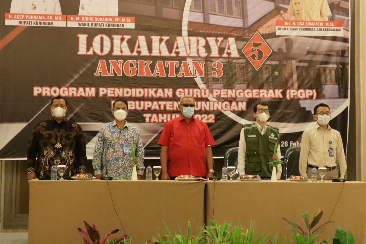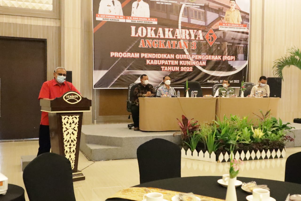 Hal ini disampaikan oleh Bupati Kuningan H. Acep Purnama, SH., MH. pada saat membuka Kegiatan Lokakarya 5 Program Pendidikan Guru Penggerak (PGP) Kabupaten Kuningan Angkatan 3 Tahun 2022, Sabtu (26/2/2022) di salah satu hotel Kuningan.