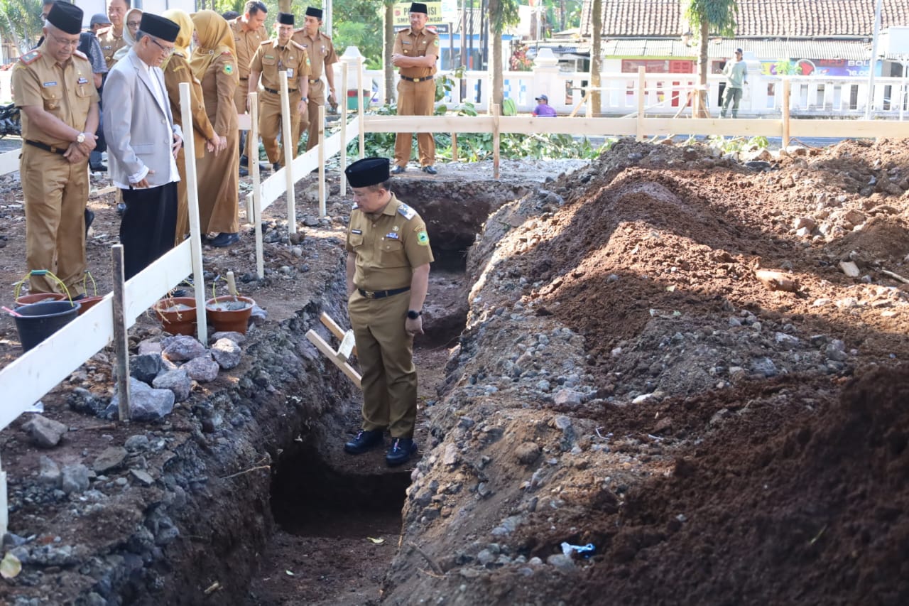 KUNINGAN – Pembangunan mushola baru di kompleks Pendopo Pemerintah Kabupaten Kuningan yang berlokasi di sebelah utara yang sebelumnya lahan parkir resmi dimulai. Prosesi peletakan batu pertama dilakukan Bupati Kuningan, Dr. H. Dian Rachmat Yanuar, M.Si., Senin (21/7/2025).
