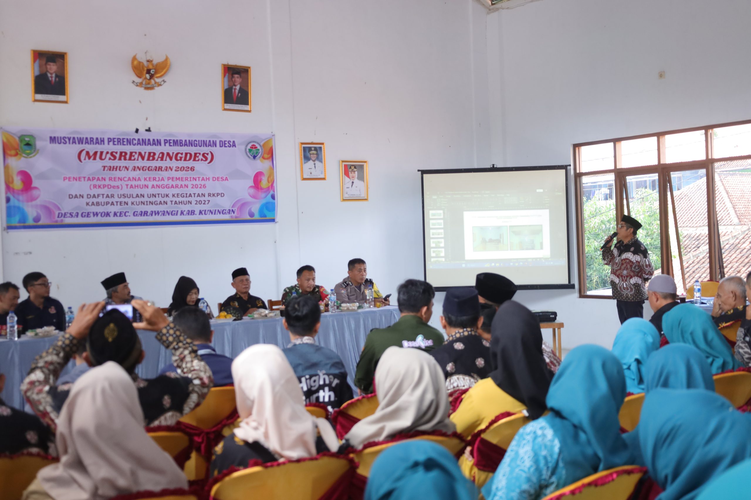GARAWANGI – Pemerintah Desa Gewok, Kecamatan Garawangi, menyelenggarakan Musyawarah Perencanaan Pembangunan (Musrenbang) Desa Tahun Anggaran 2026, Jumat (19/9/2025), bertempat di lantai dua Aula Kantor Pemdes setempat.