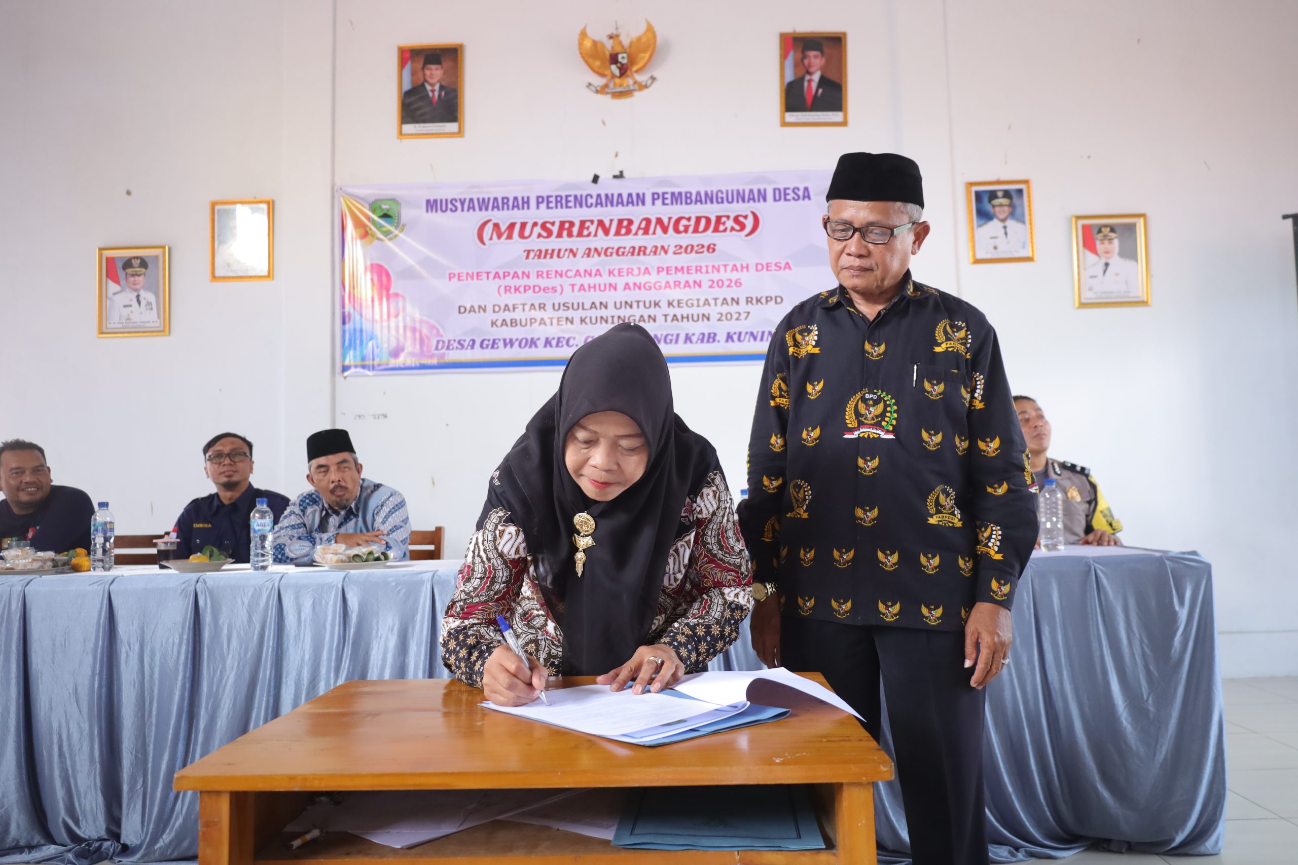 Sebagai penutup rangkaian kegiatan, Musrenbang Desa Gewok dilanjutkan dengan penandatanganan berita acara kesepakatan antara Kepala Desa dan Ketua BPD yang memuat rencana prioritas pembangunan tahun 2026. Dokumen tersebut akan menjadi dasar pengajuan ke tingkat kecamatan dan kabupaten, sehingga arah pembangunan desa dapat berjalan lebih terarah, sinergis, dan berkelanjutan. (IKP/DISKOMINFO)