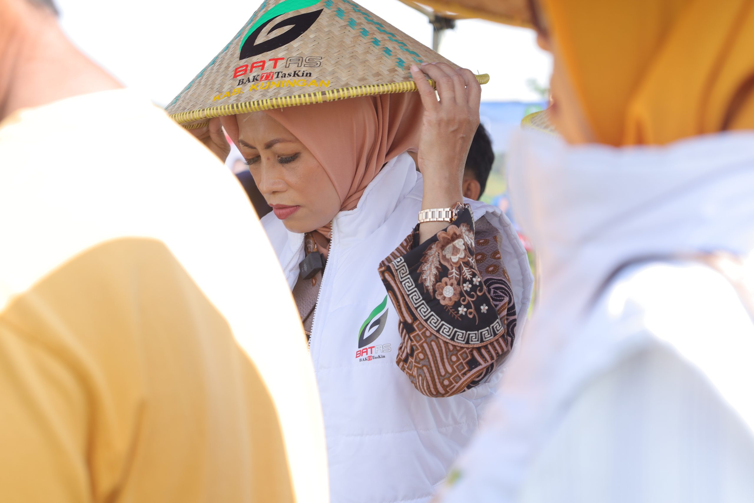 Sementara, Ketua BAKTI TASKIN Kabupaten Kuningan, Hj. Ela Helayati, S.Sos, yang akrab disapa Bunda Ela, menyampaikan, kegiatan panen perdana merupakan wujud nyata komitmen organisasi dalam mendukung program ketahanan pangan daerah dan meningkatkan produktivitas pertanian masyarakat.