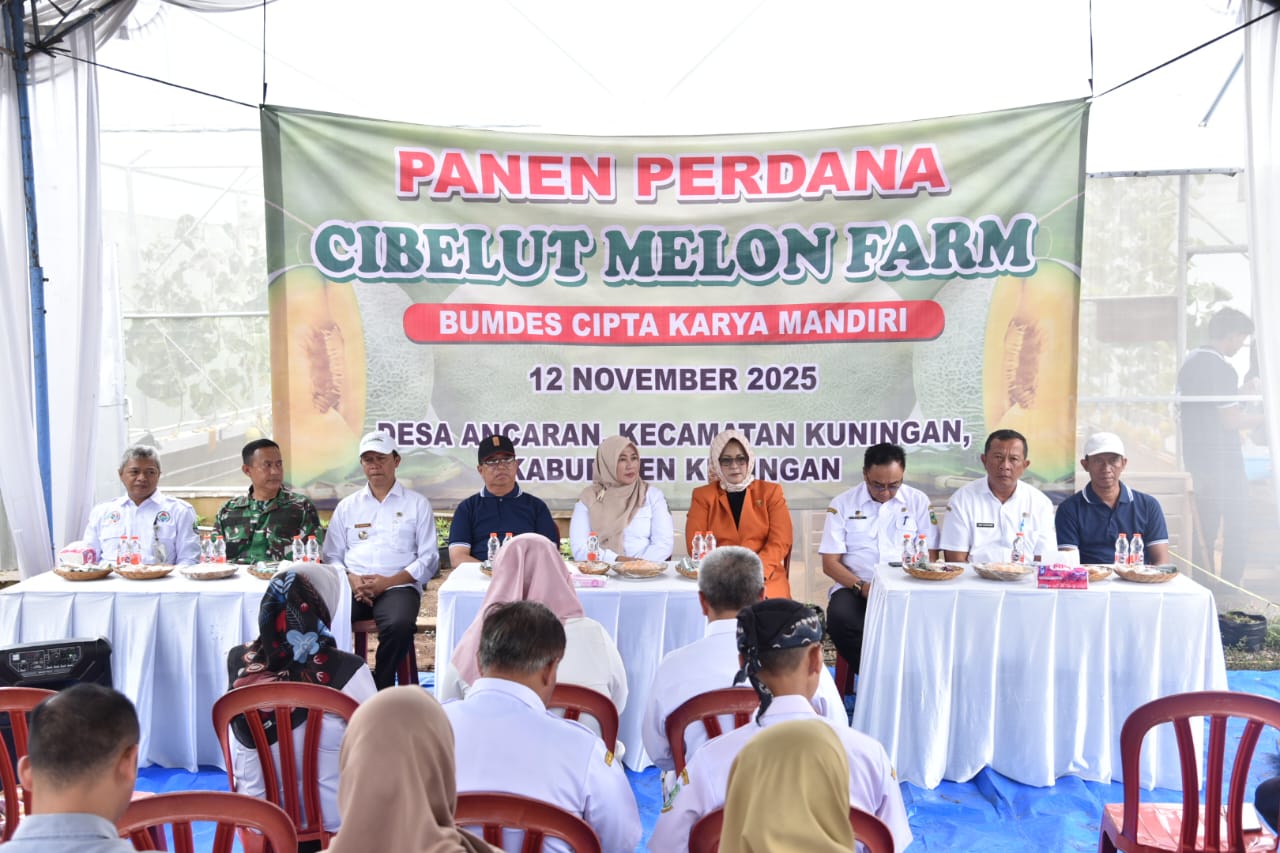 KUNINGAN, — Wakil Bupati Kuningan Tuti Andriani menghadiri kegiatan Panen Perdana Cibelut Melon Farm yang berlokasi di Jalan Mbah Dako, Blok Pahing Desa Ancaran, Rabu (12/11/2025). Kegiatan ini diselenggarakan oleh Badan Usaha Milik Desa (BUMDes) Cipta Karya Mandiri Desa Ancaran sebagai salah satu wujud inovasi pertanian dan penguatan ekonomi masyarakat desa.