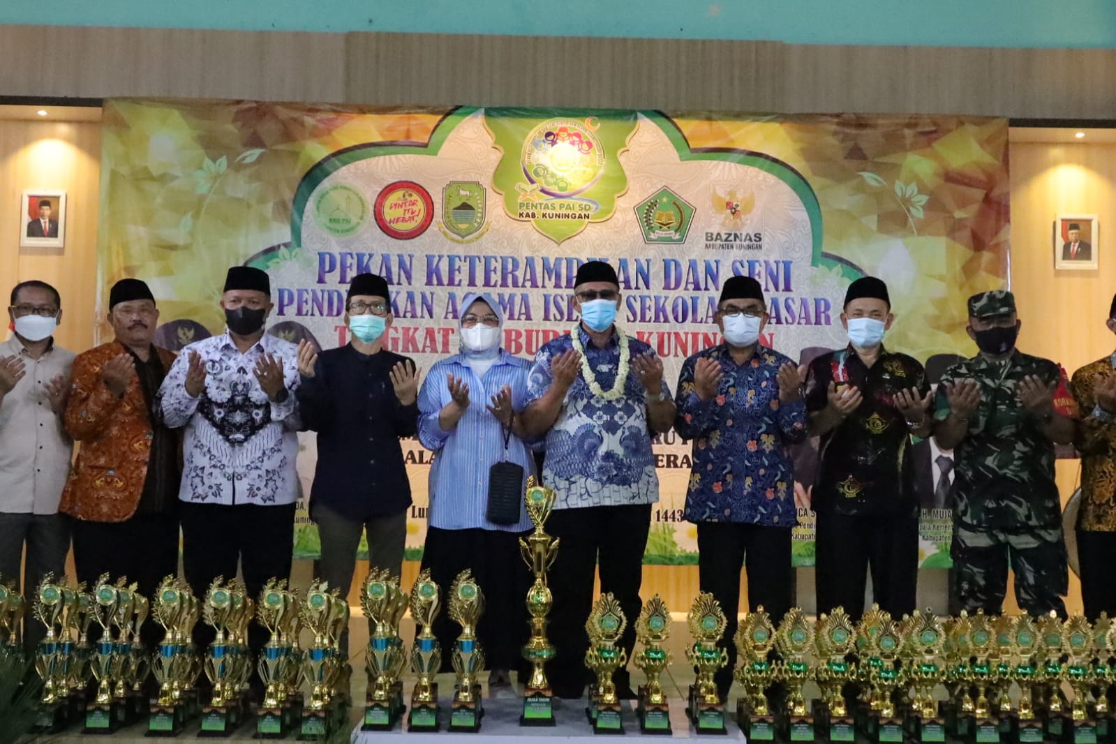 KUNINGAN,- Pembukaan Pekan Keterampilan dan Seni Pendidikan Agama Islam (Pentas PAI) Tingkat Kabupaten Kuningan Jenjang TK dan SD Resmi dibuka langsung oleh Bupati Kuningan H. Acep Purnama, SH.,MH dengan ditandai Pemukulan Gong. Kegiatan tersebut dilaksanakan di Desa Cirahayu, Kecamatan Luragung, Kabupaten Kuningan, Sabtu (19/03/2022).