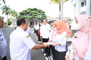 Pelaksanaan Apel Pagi, Sekda Dian Serahkan Hadiah Lomba HUT RI 78 Lingkup Setda