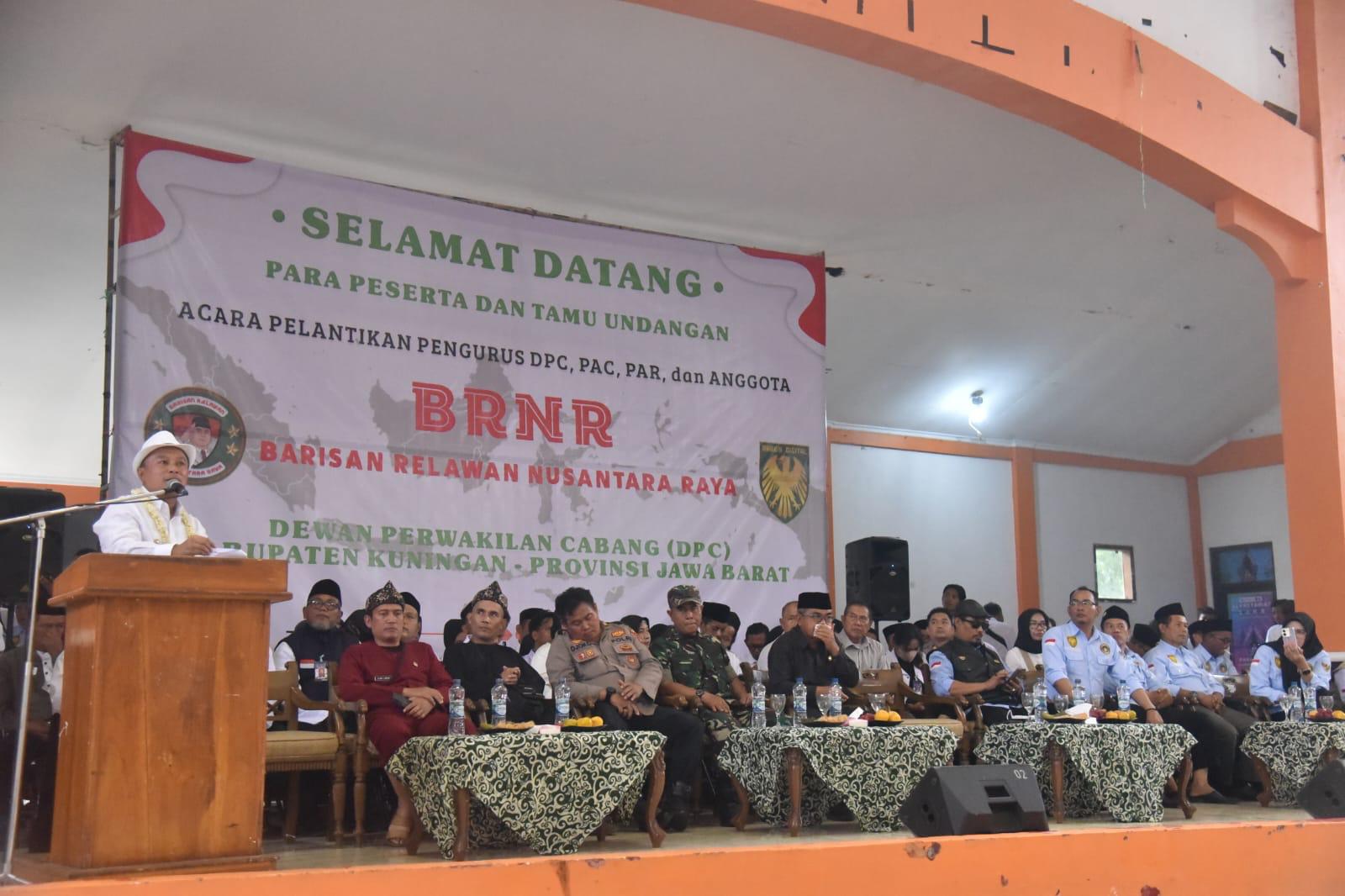 KUNINGAN – Kepengurusan DPC (Dewan Pimpinan Cabang), PAC (Pengurus Anak Cabang), PAR (Pengurus Anak Ranting) dan anggota Organisasi Barisan Relawan Nusantara Raya (BRNR) se-Kabupaten Kuningan resmi dilantik, Kamis (22/05/2025). Dihadiri secara langsung oleh Bupati Kuningan, Dr. H. Dian Rachmat Yanuar, Msi bertempat di GOR Ewangga Kuningan.