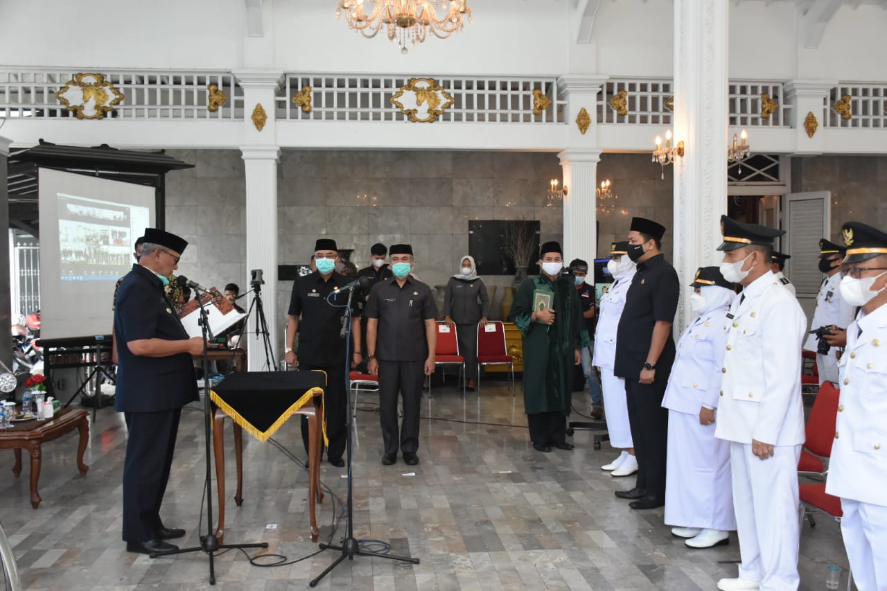 “Selamat kepada seluruh ASN yang baru diambil sumpah dan dilantik dalam Jabatan Administrasi dan Jabatan Fungsional, saudara-saudara adalah orang terpilih yang diberi amanah untuk duduk dalam jabatan, saya percaya saudara akan memegang teguh dan melaksanakan sumpah yang telah diikrarkan dengan sebaik-baiknya.” ungkap Bupati.