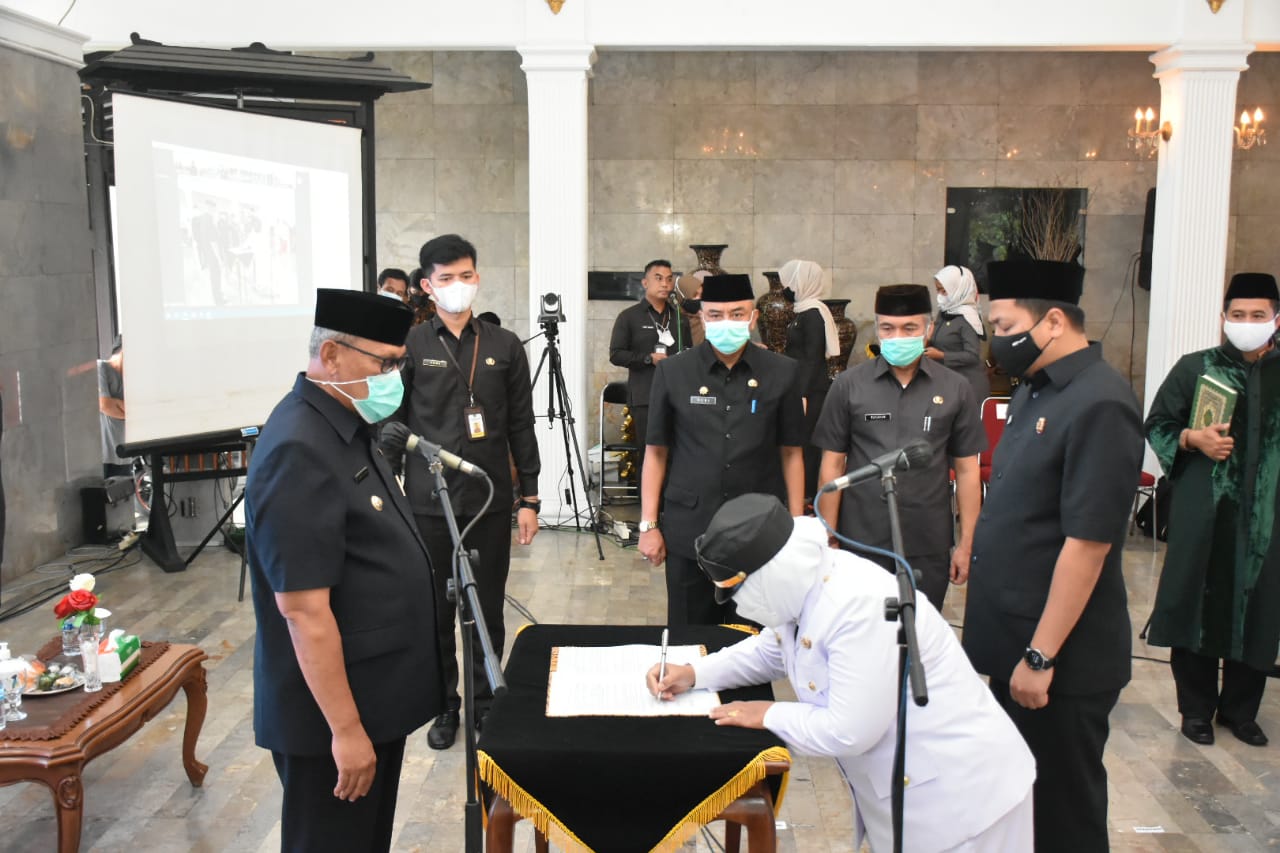 Pelantikan yang berlangsung khidmat ini, Bupati mengucapkan selamat pada seluruh ASN yang sudah dilantik dan disumpah janji dengan selalu mengemban amanah yang diberikan bangsa dan negara selaku ASN yang baik untuk melayani masyarakat dan membangun negeri ini dengan penuh dedikasi, loyalitas dan integritas yang tinggi.