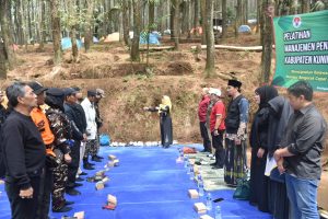KUNINGAN- Guna meningkatkan pencegahan dan kesiapsiagaan kemampuan dalam menghadapi resiko bencana. Lembaga Pemuda Islam Ancaran (LPIA) dan Persatuan Pencak Silat Indonesia (PPSI) Kuningan, perwakilan Mahasiswa, Mapala, Banser dan lainnya menggelar latihan Manajemen Penanggulangan Tanggap Bencana di Talaga Surian Camp Park, Desa Puncak, Kecamatan Cigugur.