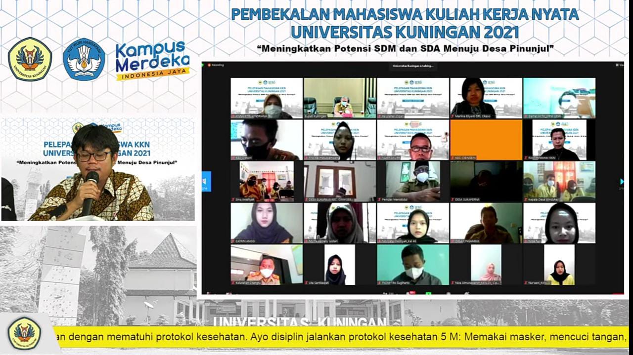 Sementara, Rektor Uniku, Dikdik Harjari menyampaikan, Kegiatan KKN ini adalah KKN kedua yang dilakukan oleh Uniku dalam kondisi pandemi Covid-19. Karenanya, KKN dilaksanakan secara daring. Namun, ini bukan berarti kita tidak bisa melakukan sesuatu yang bermanfaat untuk masyarakat, tapi justru kita dituntut untuk lebih kreatif dan inovatif sehingga masih bisa memberikan kontribusi kepada masyarakat.