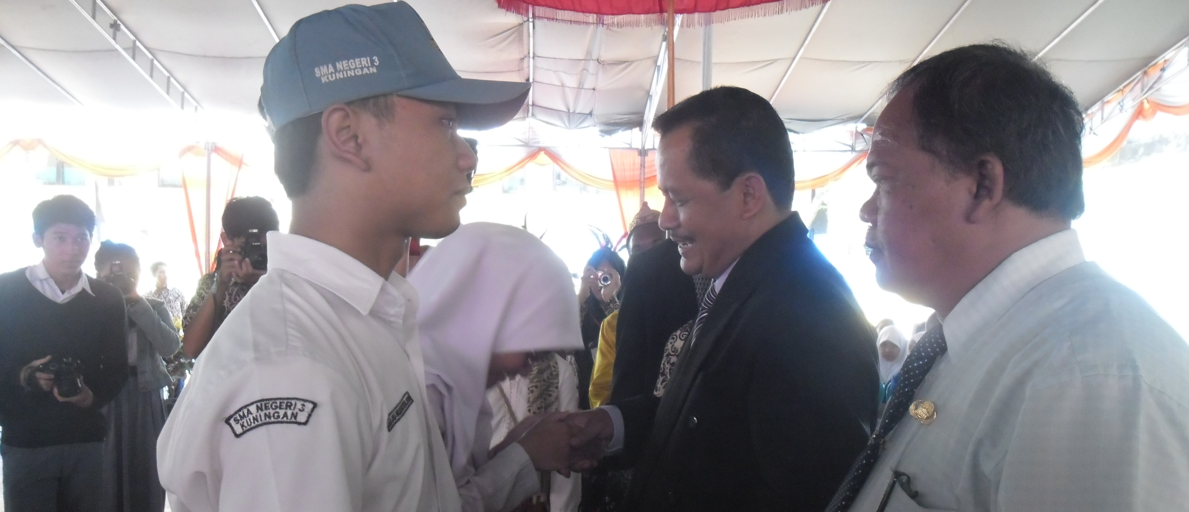 Tidak terasa tiga tahun sudah para siswa-siswi kelas XII mengenyam pendidikan tingkat atas di SMAN 3 Kuningan, Senin (28/04) bertempat di lapangan olah raga SMAN 3 Kuningan, seluruh keluarga besar SMAN 3 Kuningan menggelar acara pelepasan siswa-siswi kelas XII tahun pelajaran 2013/2014 sekaligus penutupan Anniversary SMAN 3 Kuningan ke-23. Kegiatan yang dihadiri Bupati Kuningan, Hj. Utje Ch Suganda itu berjalan khidmat dan meriah. Isak tangis antara guru dan murid pun ikut mewarnai acara pelepasan tersebut. Kepala SMAN 3 Kuningan, secara simbolis melepaskan burung merpati yang menandakan bahwa siswa-siswi yang telah lulus diharapkan mandiri dan mampu mengejar cita-cita yang diharapkan masing-masing siswa.