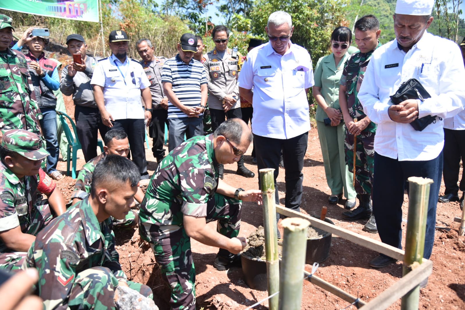 “ dari ide pak dandim direkomendasi dan didukung oleh Forkopimda, yang pada hari ini kita akan menandai bahwa manusia yang telah diberikan nikmat Amanah oleh tuhan yang maha kuasa. Kita duduk Bersama disini untuk meletakan batu pertama tanda dimulainya pembangunan – pembangunan yang nantinya bermanfaat bagi masyarakat.” ucap Danrem Dany Rakca.