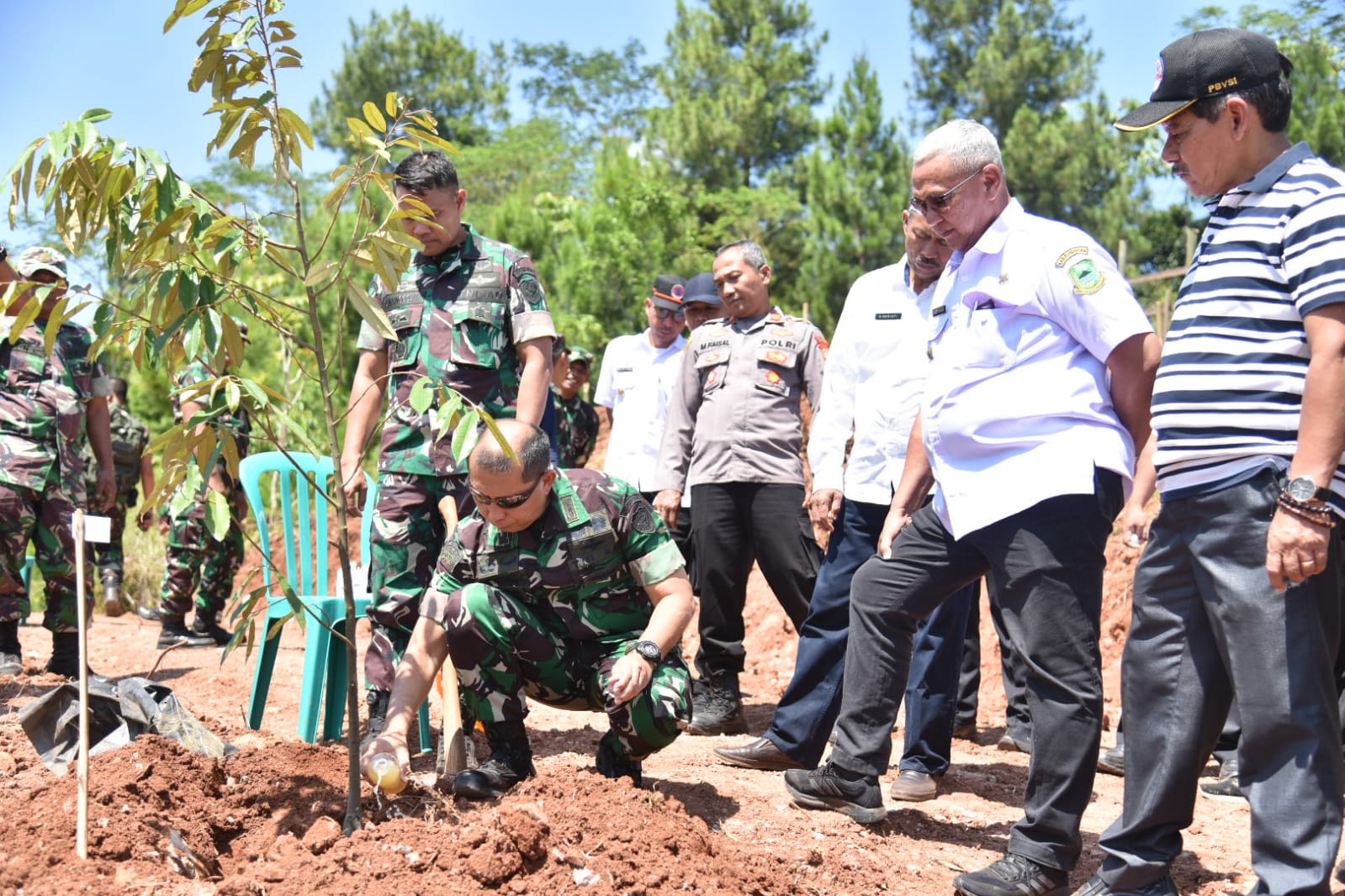 “Kita sudah mulai menanam pohon durian, alpukat, kurma dan semuanya bersertifikat. Sebagian lahan akan ditanam jagung, kacang, dll. Dan, itu semua akan dikelola oleh masyarakat 4 desa tersebut,” tuturnya.
