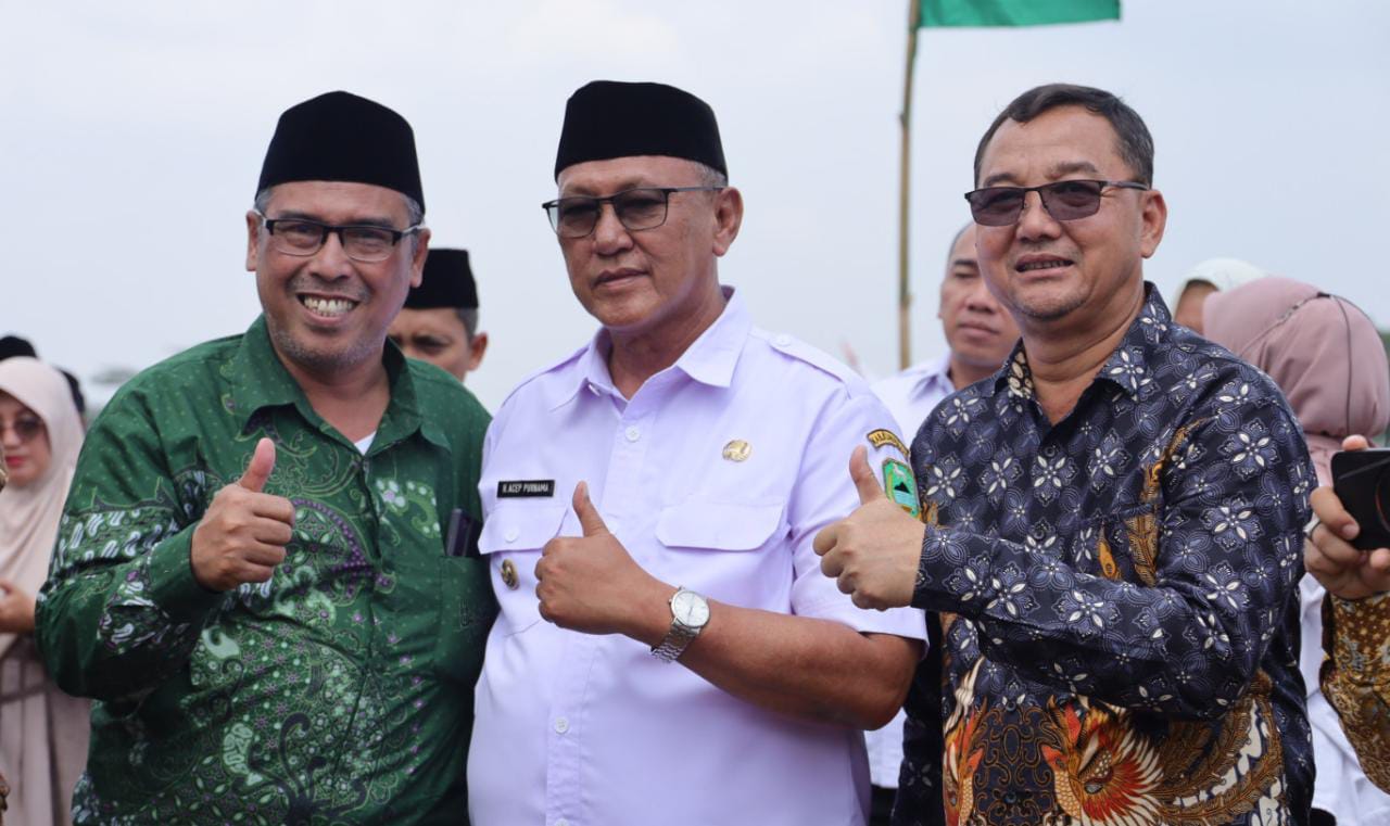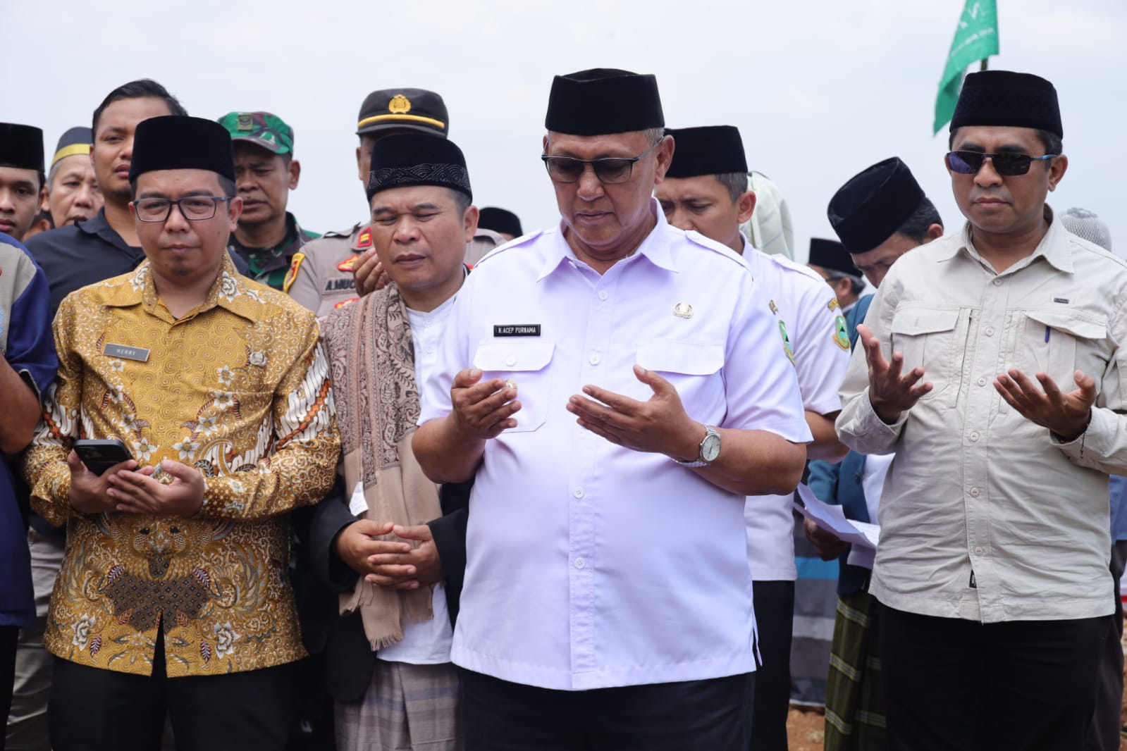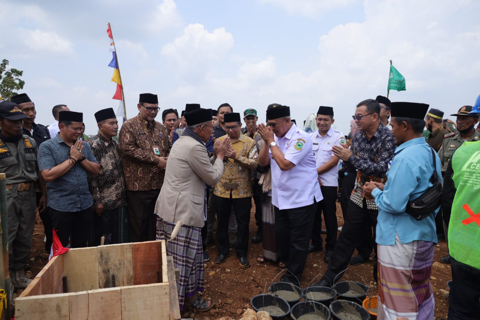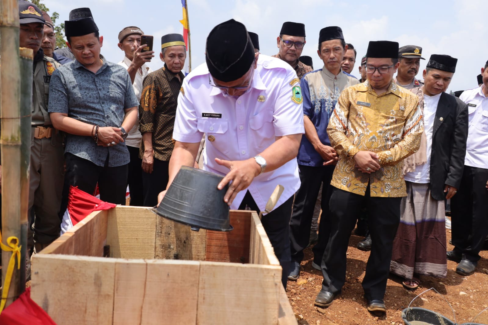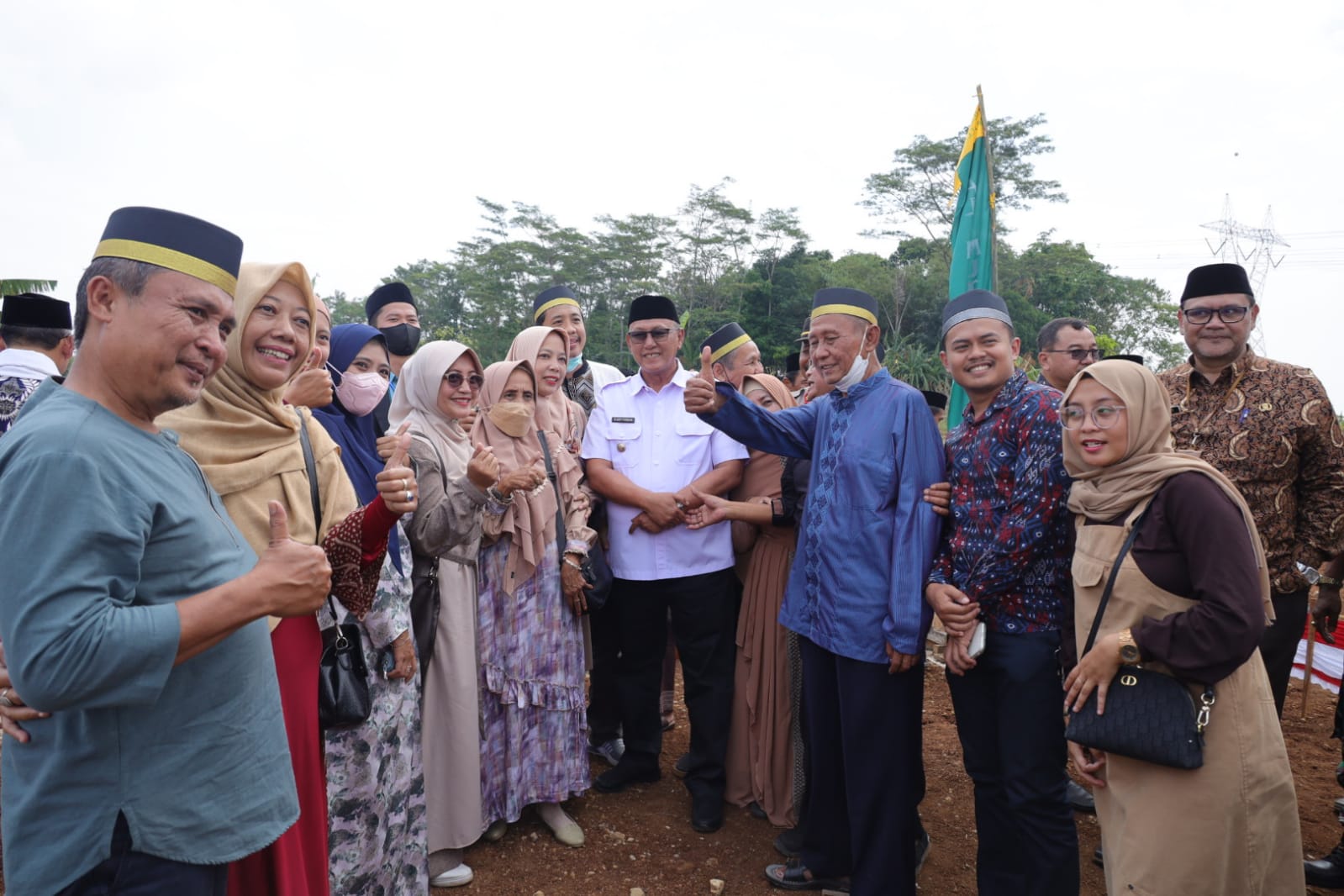KUNINGAN, – Bupati Kuningan H. Acep Purnama SH.,MH bersama Pendiri dan Pengasuh PonPes Al-mutawally Drs KH Nunung Abdullah Dunun, meletakan Batu Pertama Pembangunan Masjid “Zainal ‘Abidin” Kampus II Pesantren Terpadu Kulliyatul Mu’allimin Al- Mutawally di Kampus II KMA Desa Patalagan Kecamatan Pancalang Kab. Kuningan, Rabu (7/9/2022).