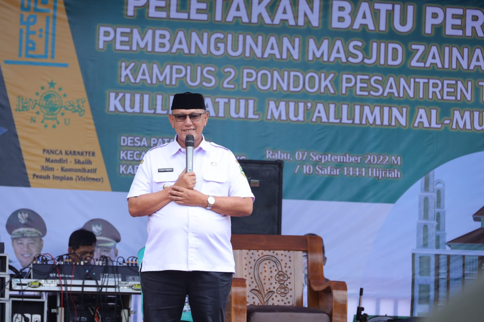 Saat memberikan sambutan, Bupati Kuningan Acep Purnama mengucapkan Selamat dan memberikan apresiasi serta mendukung pembangunan masjid tersebut. Menurutnya, Momentum peletakan batu pertama Pembangunan Masjid “Zainal ‘Abidin” Kampus II Pesantren Terpadu Kulliyatul Mu’allimin Al- Mutawally perlu dimaknai sebagai peletakan “fondasi berpikir” dan “landasan pijak” untuk memulai langkah-langkah besar dan merealisasikan gagasan brilian demi pembangunan dan kesejahteraan umat.