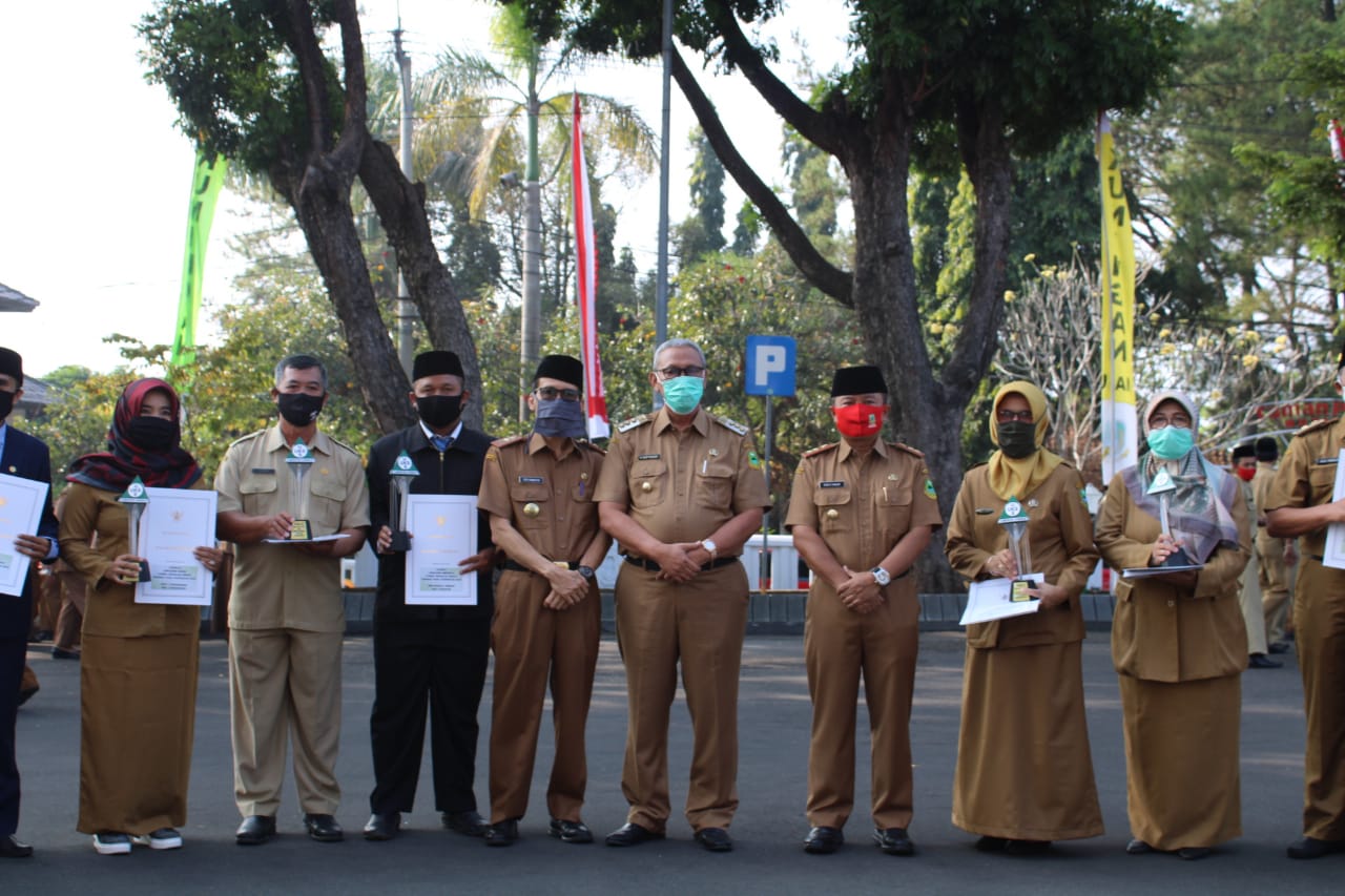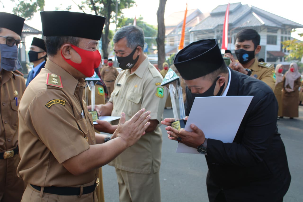 Pada Apel pagi Sekda Kuningan, Dr. H. Dian Rachmat Yanuar, M.Si. mengumumkan pemenang lomba sekolah sehat (LSS) tingkat Kabupaten Kuningan tahun 2020 jenjang TK/RA sampai SMA/SMK/MA di Halaman Setda Kabupaten Kuningan, Senin (10/08/20). Ajang ini diselenggarakan oleh bagian Kesra Setda Kabupaten Kuningan yang bekerja sama dengan tim penilai dari Dinas Kesehatan Kabupaten Kuningan, Dinas Pendidikan dan Kebudayaan Kabupaten Kuningan, dan Kementrian Agama Kabupaten Kuningan.