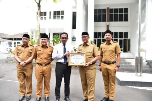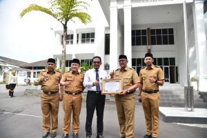 KUNINGAN – Pemerintah kabupaten kuningan memperoleh Penghargaan “Pemerintah Daerah Dengan Kinerja Penyaluran Dana Desa Terbaik Pertama Tahun 2022” Tingkat Provinsi Jawa Barat dari Ditjen Perbendaharaan Kementerian keuangan melalui kanwil Ditjen Perbendaharaan Provinsi Jawa Barat. Diserahkan langsung oleh Kepala KPPN Kuningan, Adriansyah, kepada Bupati Kuningan, H. Acep Purnama, S.H.,M.H, didampingi oleh Wakil Bupati Kuningan, H. M. Ridho Suganda, S.H.,M.Si, Sekretaris Daerah Kuningan, Dr. H. Dian Rachmat Yanuar, M.Si dan Kepala Dinas Pemberdayaan Masyarakat dan Desa, Drs. H. Dudi Pahrudin, M.Si, bertempat di Halaman Setda Kuningan pada Senin (13/02/2023) selepas apel pagi.