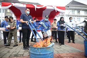 “Jumlah ini tentu bukan angka kecil. Jika rokok-rokok ilegal ini beredar di pasaran, potensi kerugian negara mencapai miliaran rupiah, sekaligus merugikan masyarakat karena beredarnya produk tanpa jaminan kesehatan dan tanpa standar mutu,” ujar Bupati Dian Rachmat Yanuar.