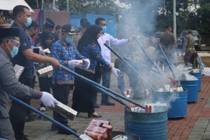 KUNINGAN – Pemerintah Kabupaten Kuningan bersama Kantor Pengawasan dan Pelayanan Bea dan Cukai (KPPBC) Tipe Madya Pabean C Cirebon melakukan pemusnahan barang hasil Penindakan se-Ciayumajakuning, berupa rokok ilegal sebanyak 7.233.417 batang.