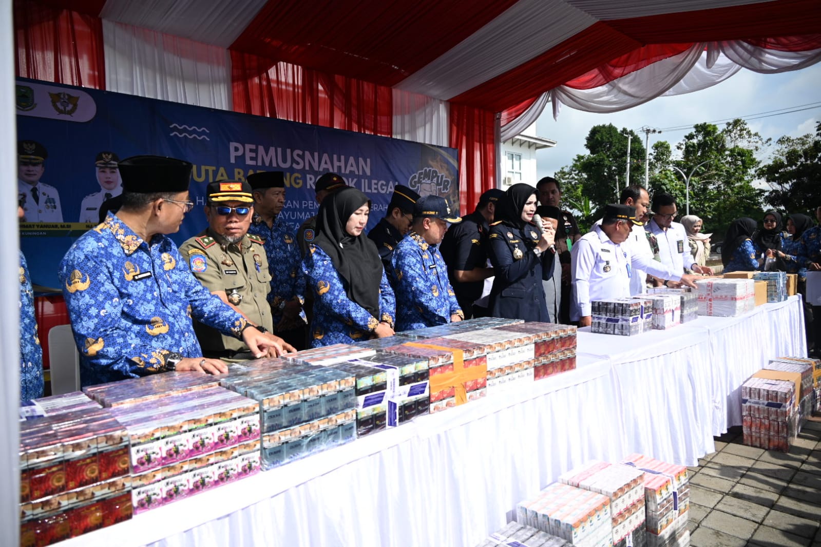 “Jumlah ini tentu bukan angka kecil. Jika rokok-rokok ilegal ini beredar di pasaran, potensi kerugian negara mencapai miliaran rupiah, sekaligus merugikan masyarakat karena beredarnya produk tanpa jaminan kesehatan dan tanpa standar mutu,” ujar Bupati Dian Rachmat Yanuar.